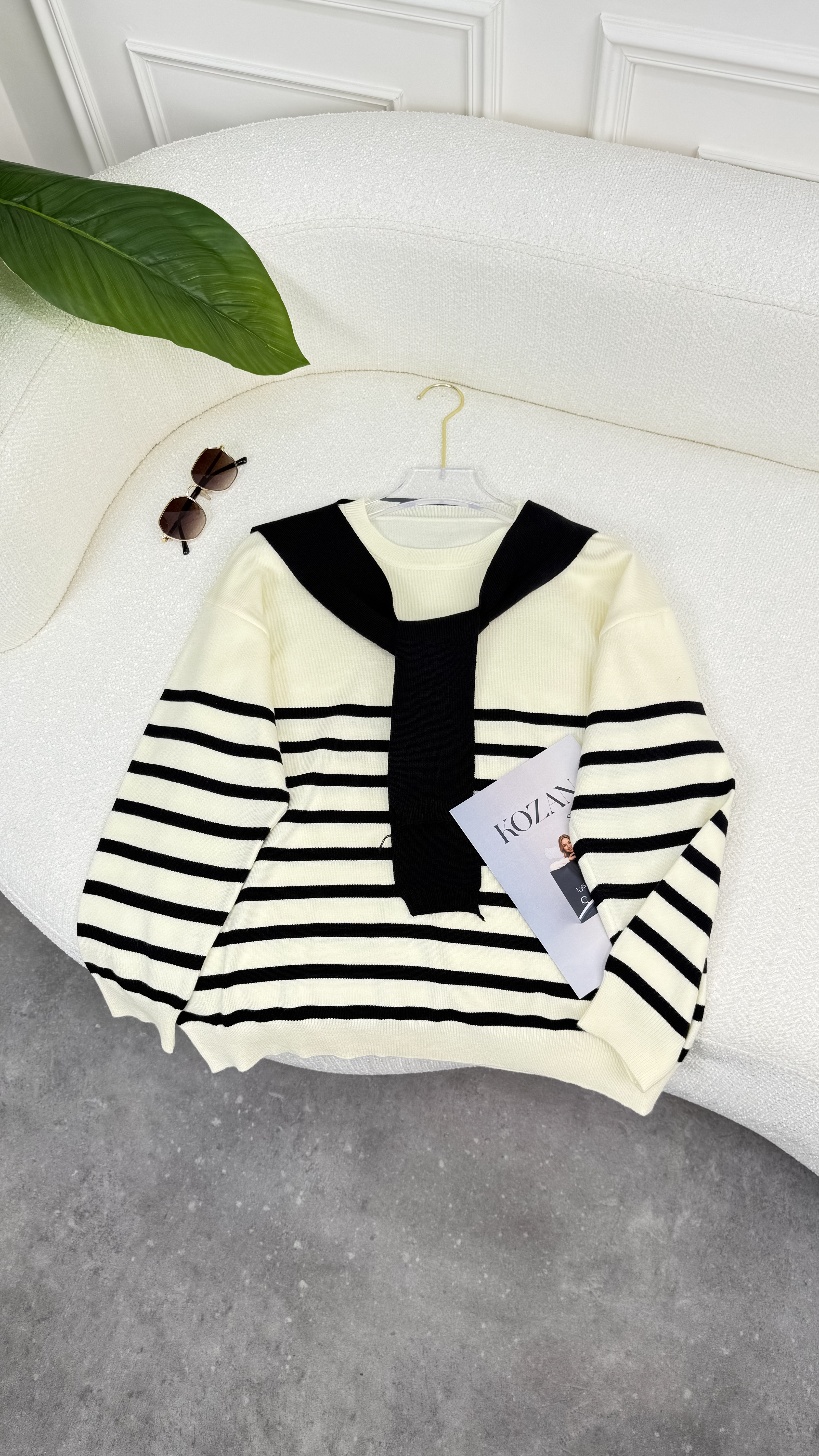 بلوزة مخطط من تحت مع شال 635187 كبتشينو