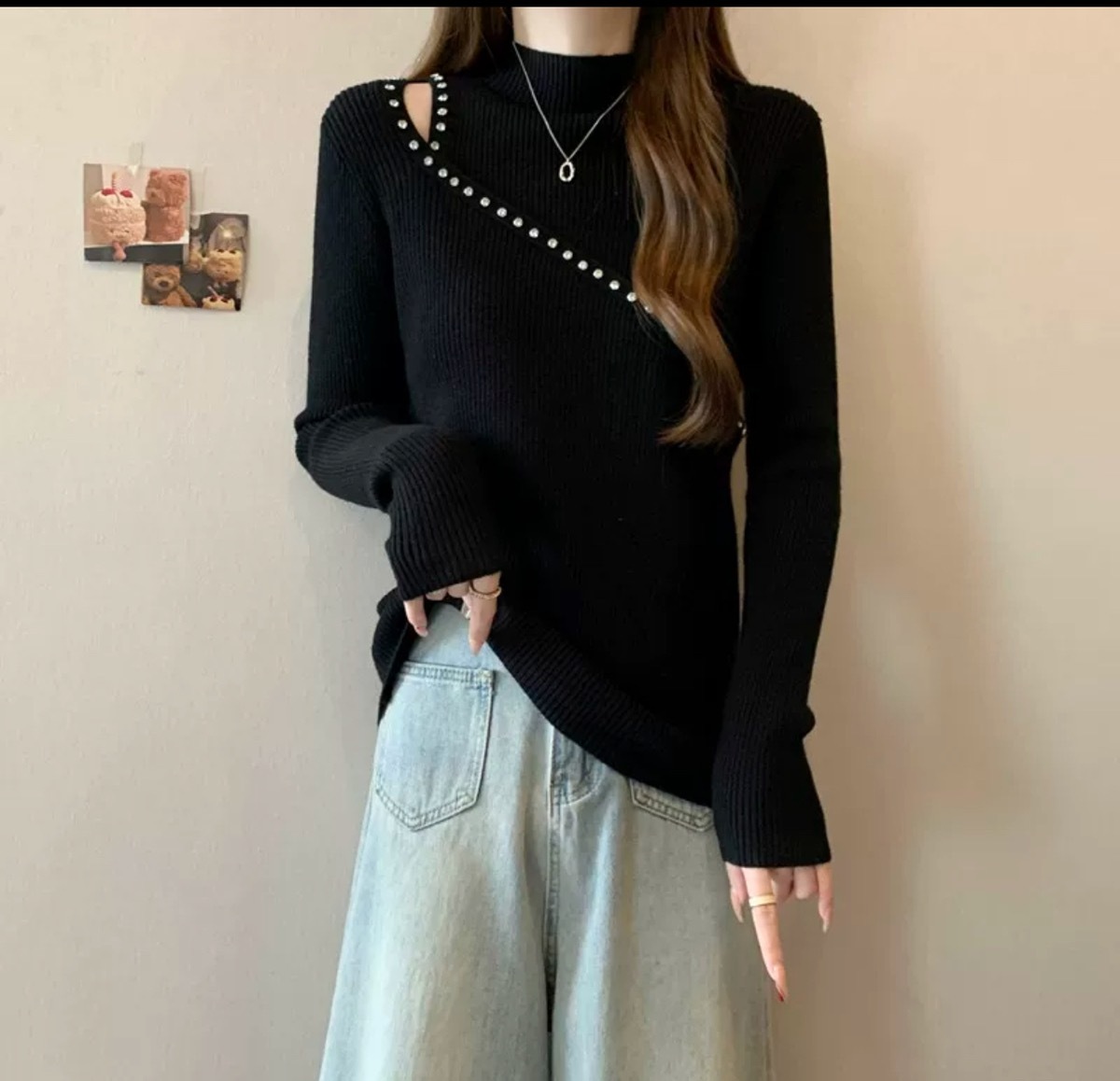 بلوزة سترس مع فتحة اسود