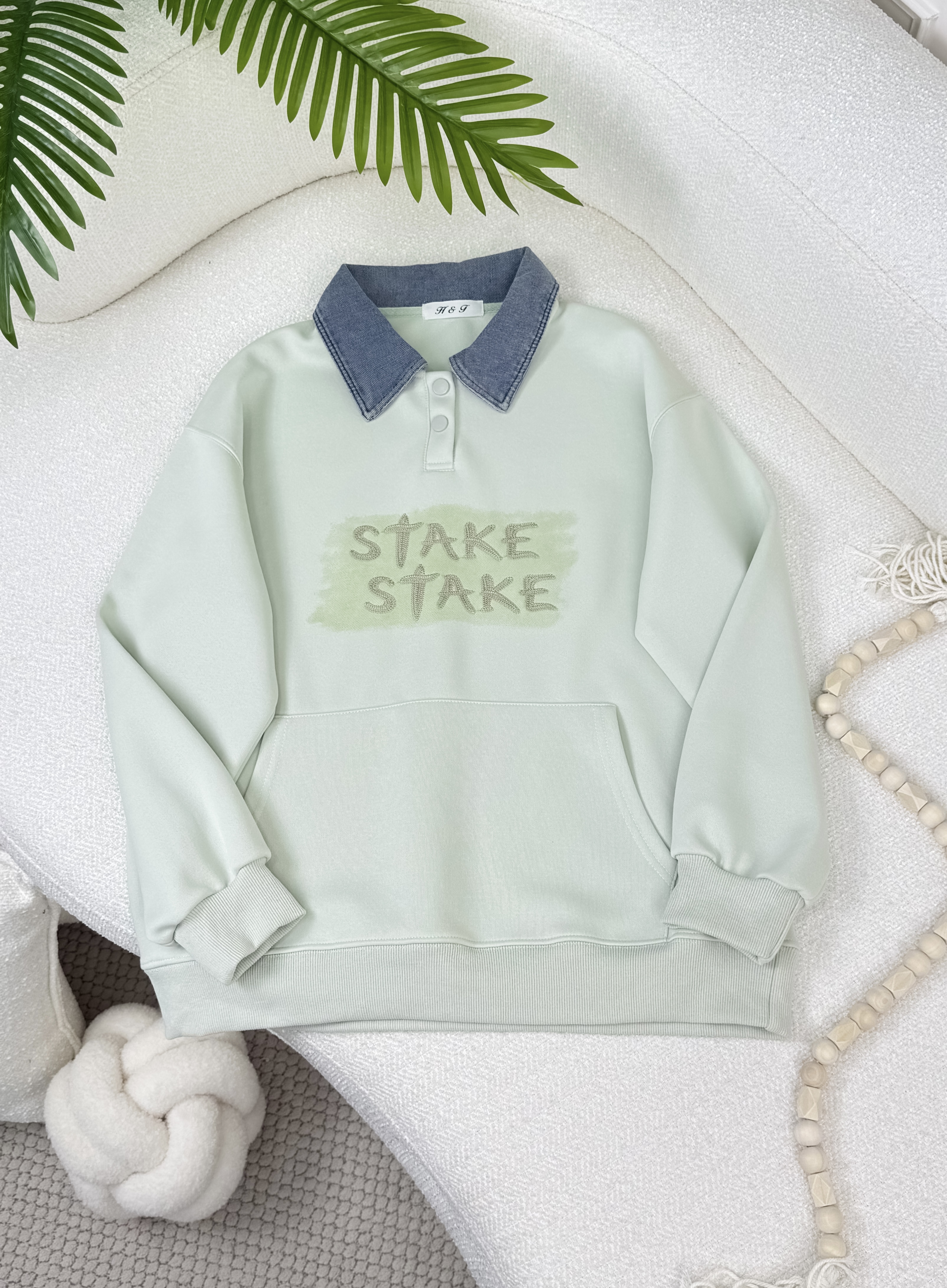 بلوزة قبة جينز STAR 240393 فستقي