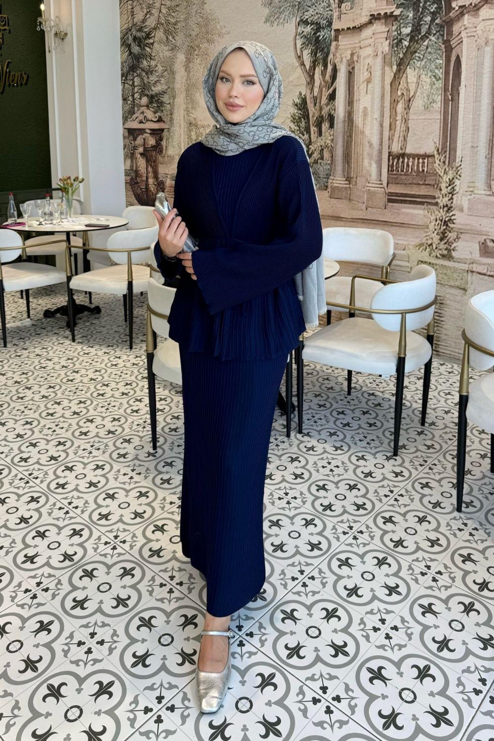 فستان قطعتين 25370 كحلي