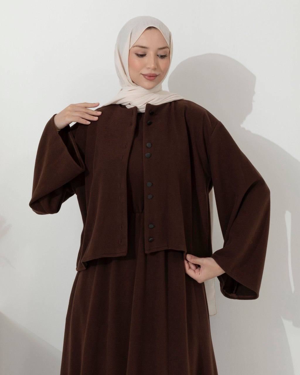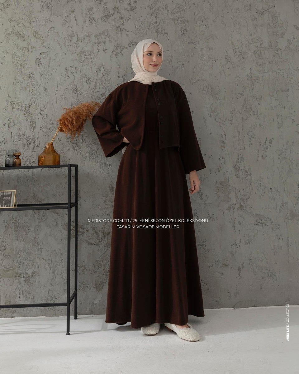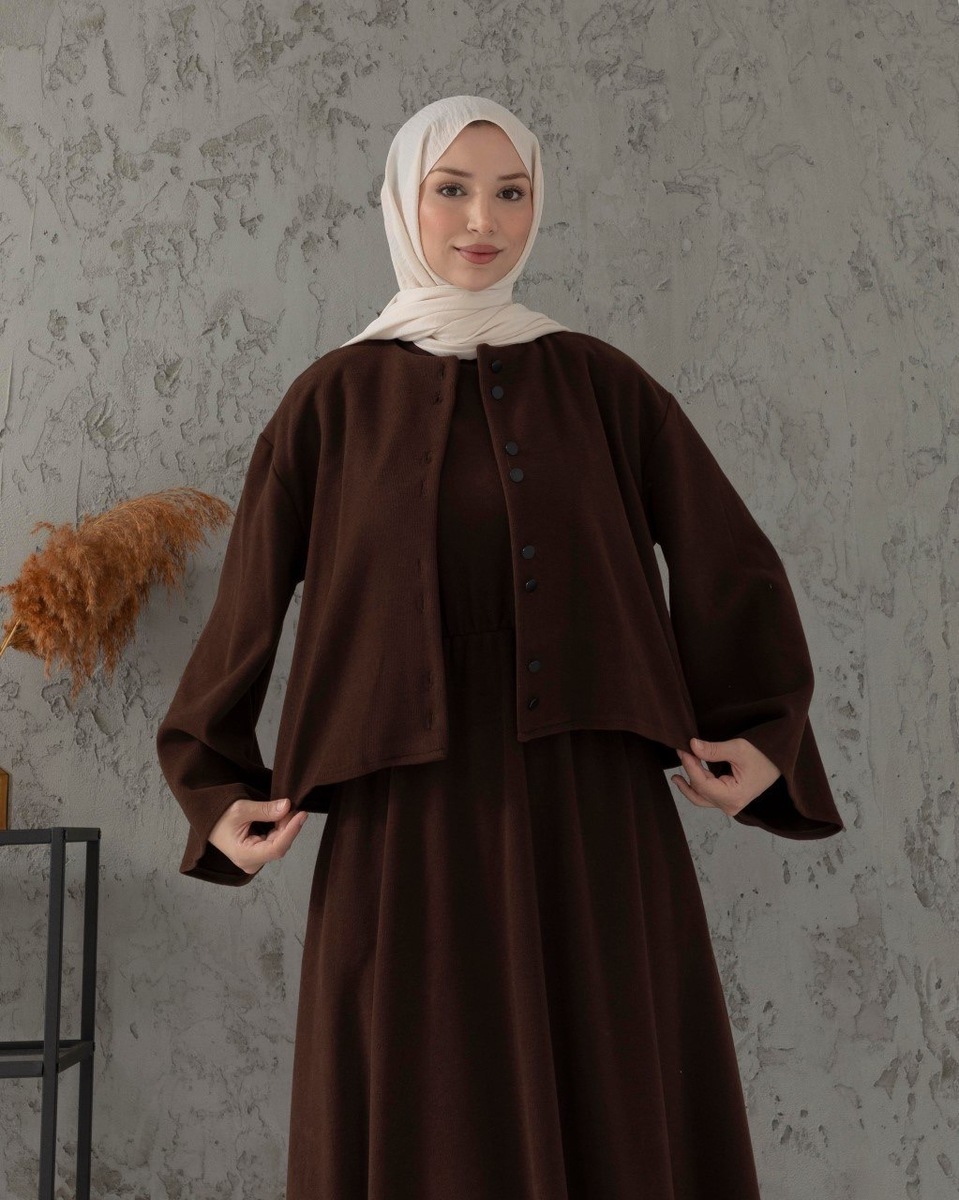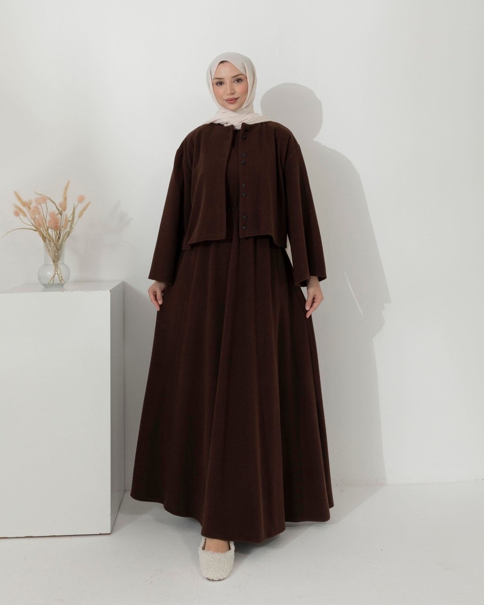 فستان سجى قطعتين 6533 بني