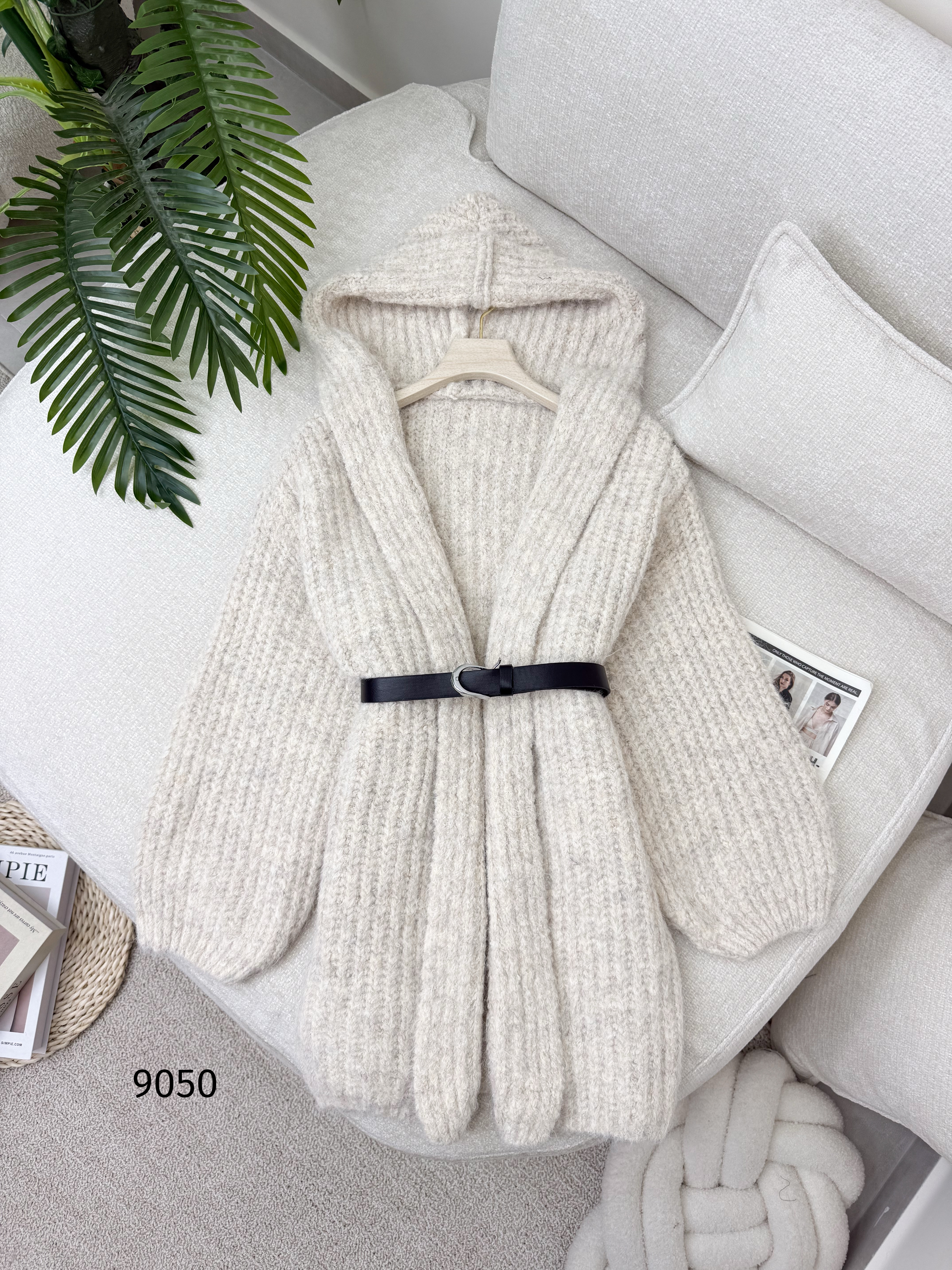جكيت قصير مفتوح صوف مع طاقية بيج فاتح 9050