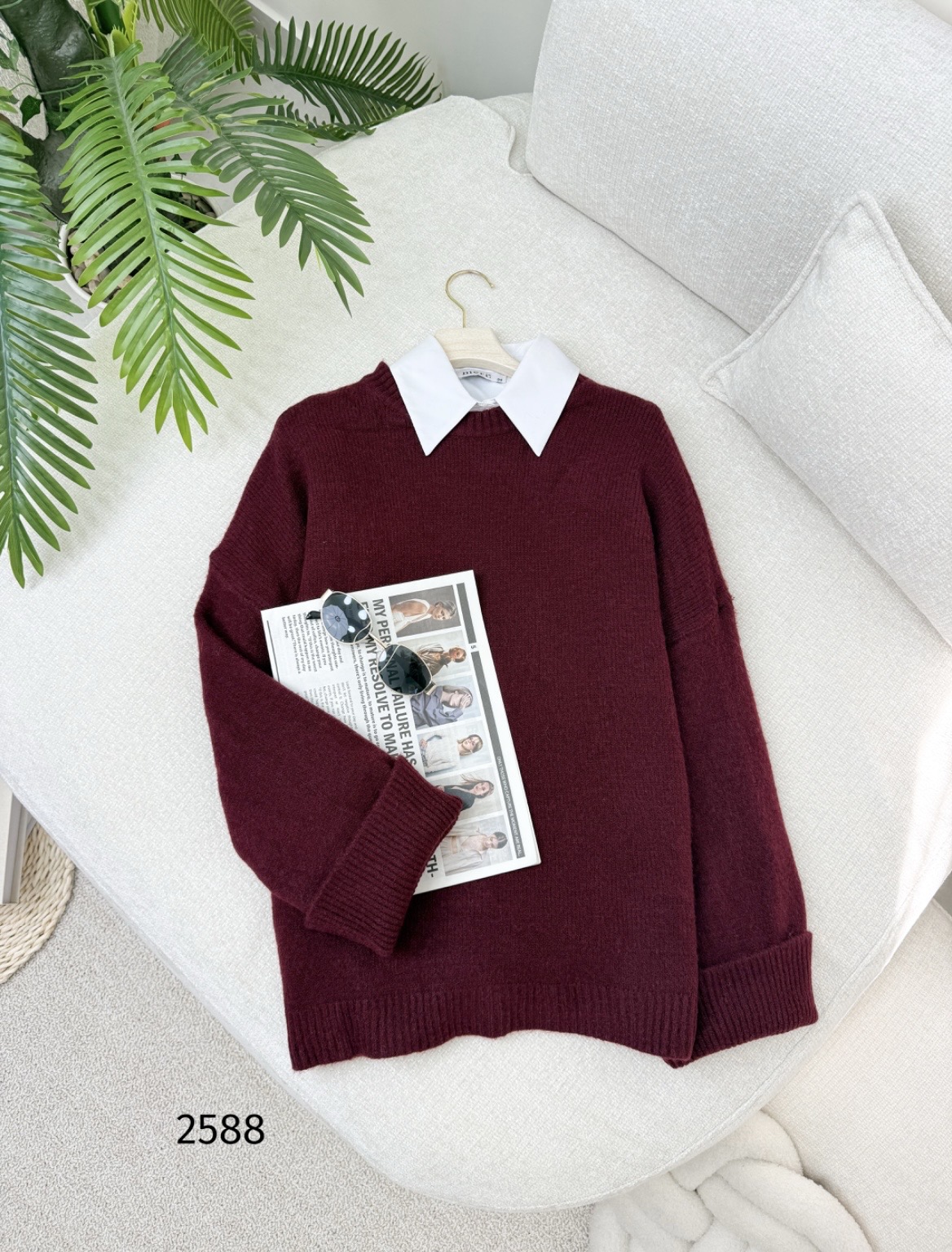 بلوزة صوف سادة 2588 خمري