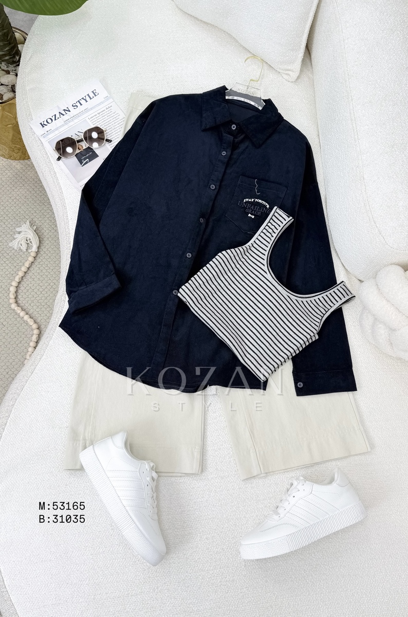 قميص مع بلوزة مخططة 53165 كحلي