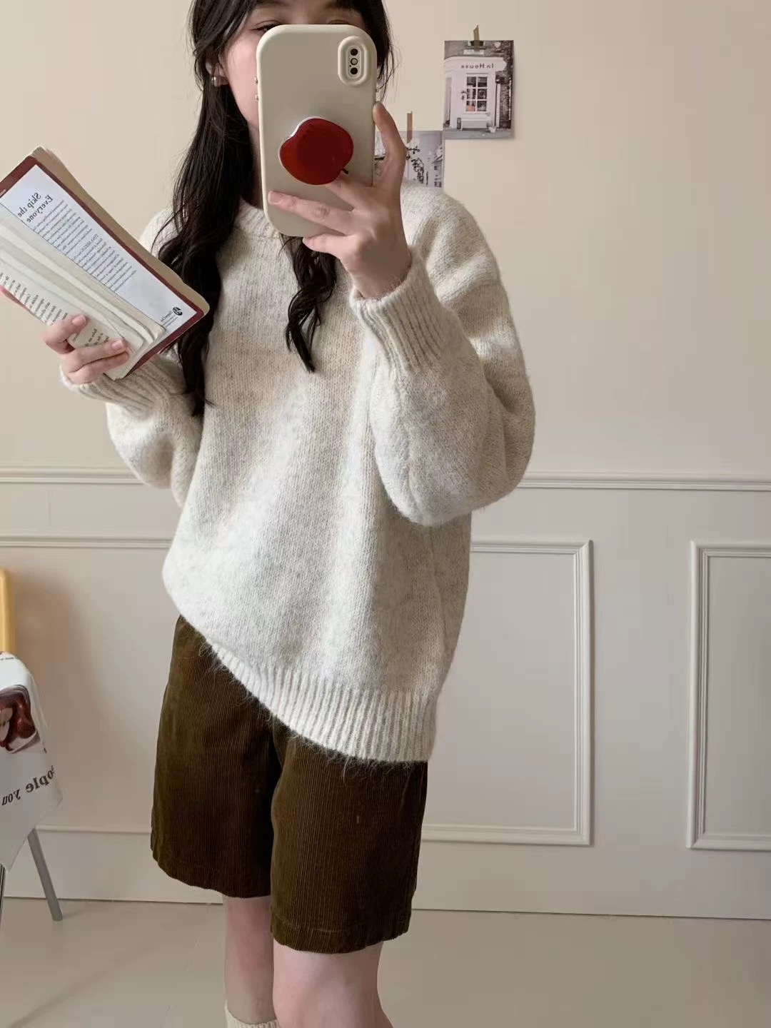 بلوزة صوف سادة ايد زم 2118 اوف وايت