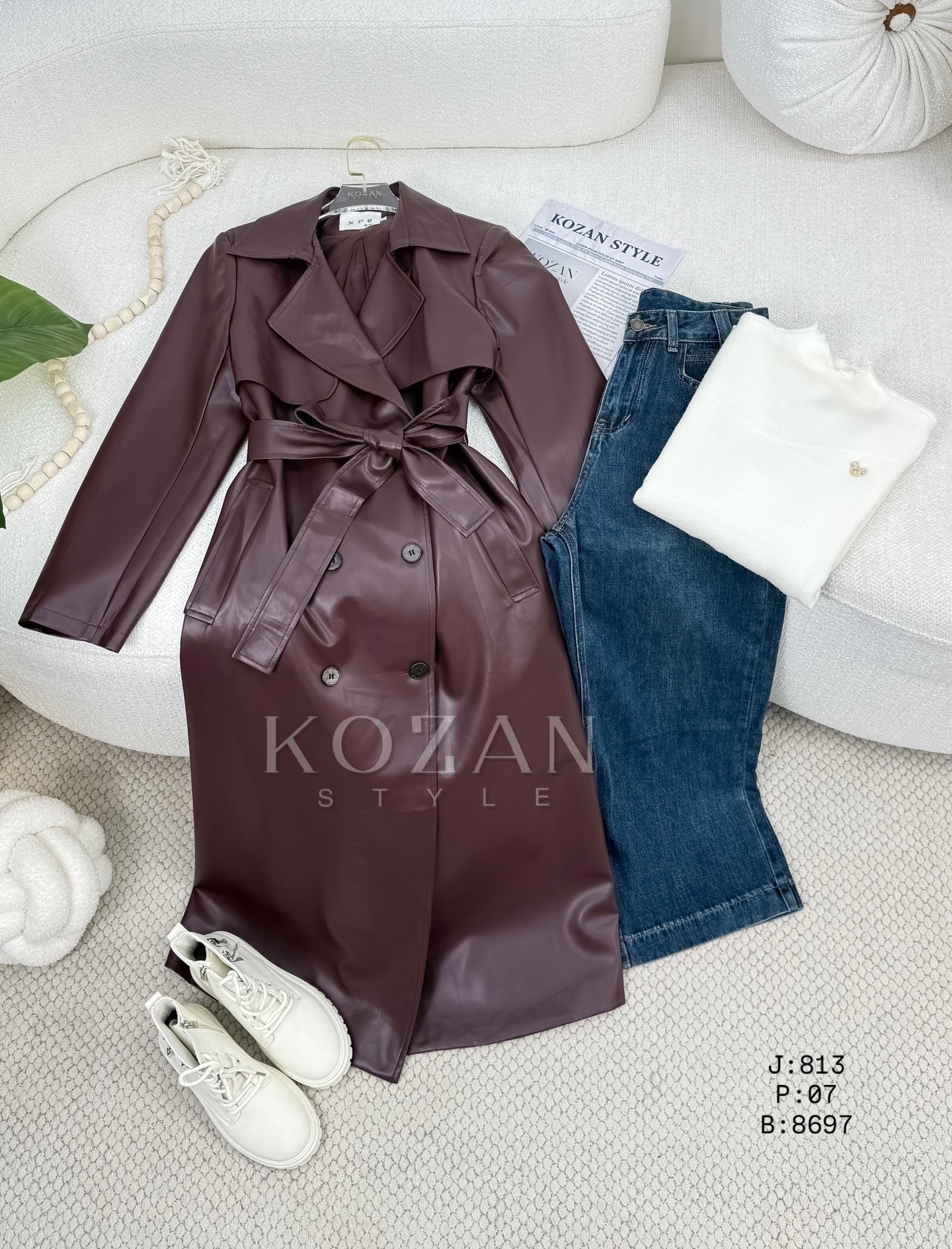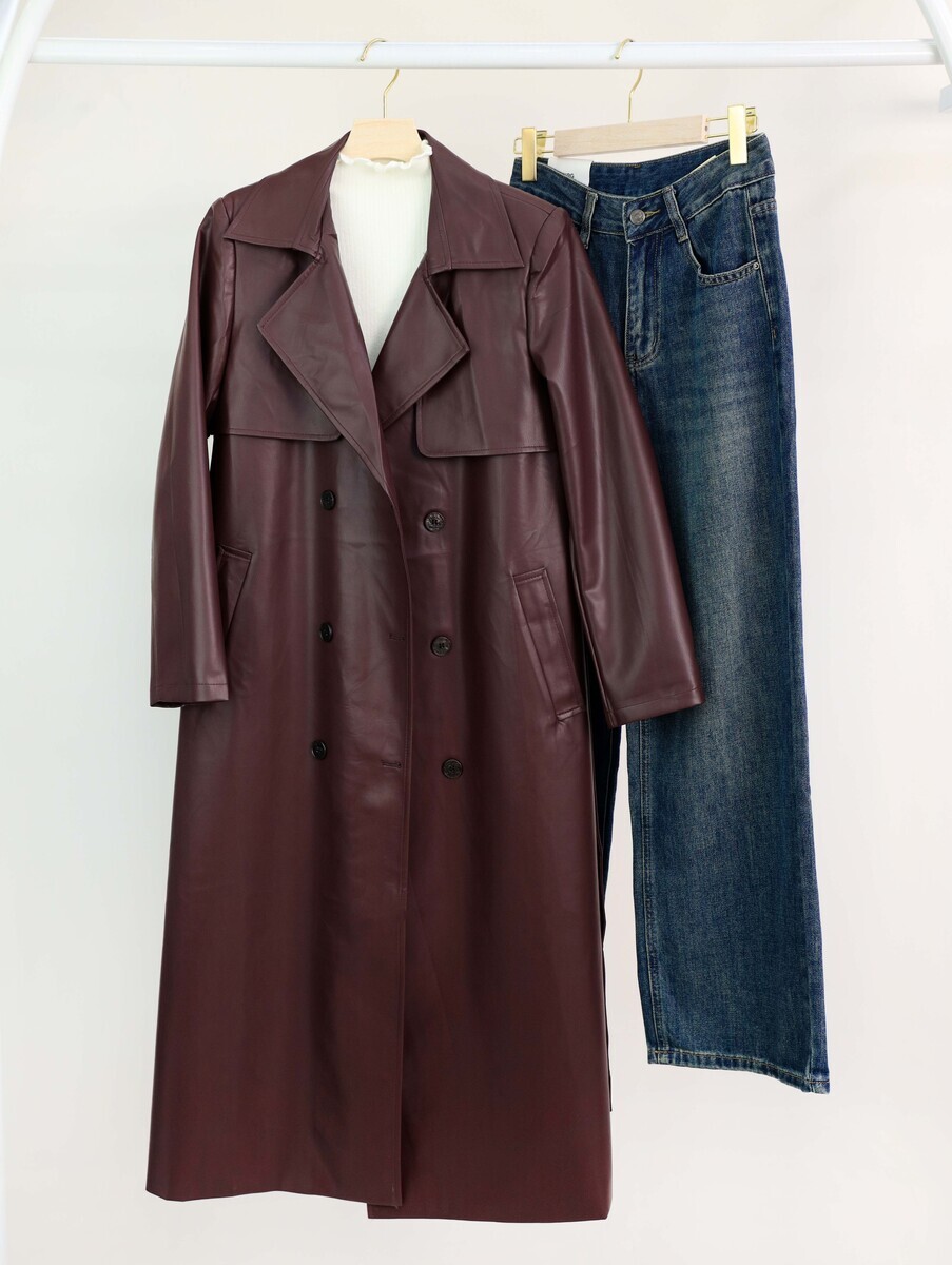 جكيت جلد طويل ردة 813 خمري