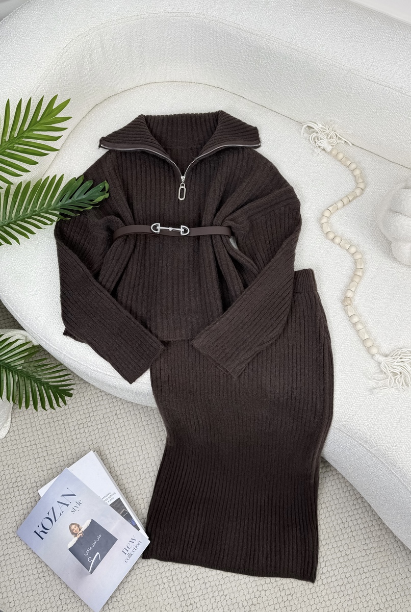 طقم صوف تنورة وبلوزة 80990 اوف وايت