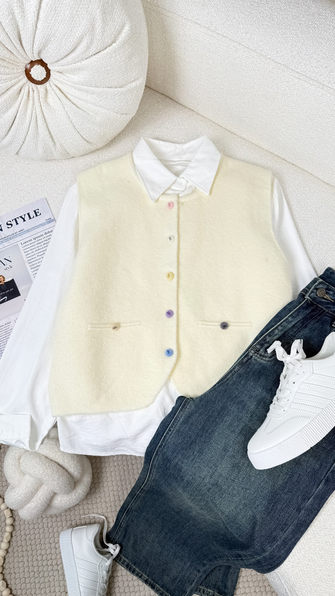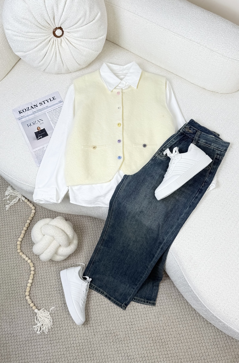 فزت ازرار ملونه 3570 m مع قميص بيج قميص ابيض