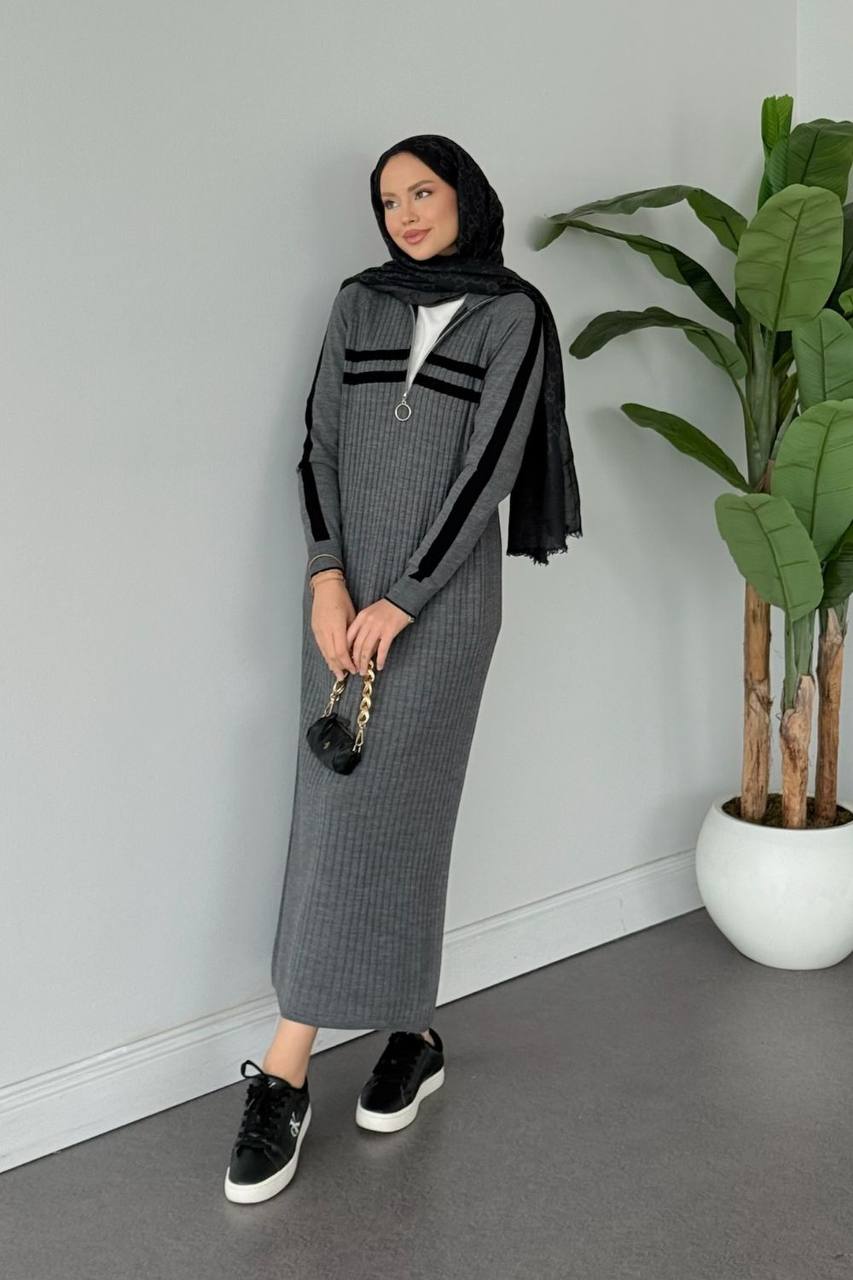 فستان خطين سحاب 2590 رمادي