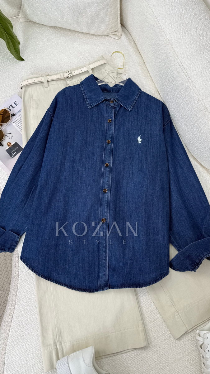 قميص جينز بولو غامق