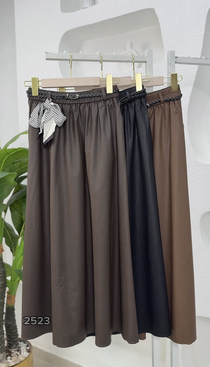 تنورة جلد حزام مجدل /سكارف 2523 بني غامق