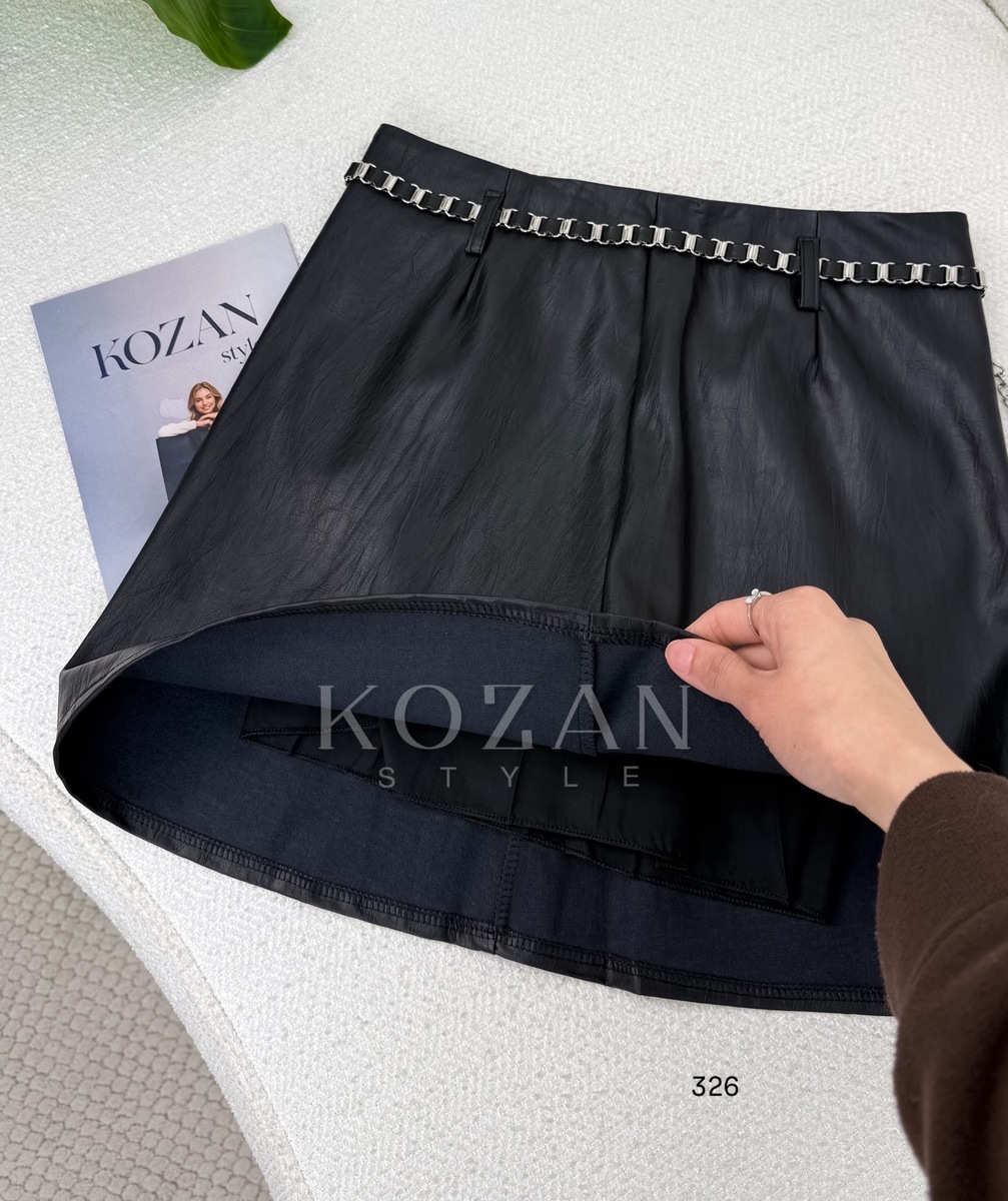 تنورة جلد قصيرة حزام حديد326 اسود