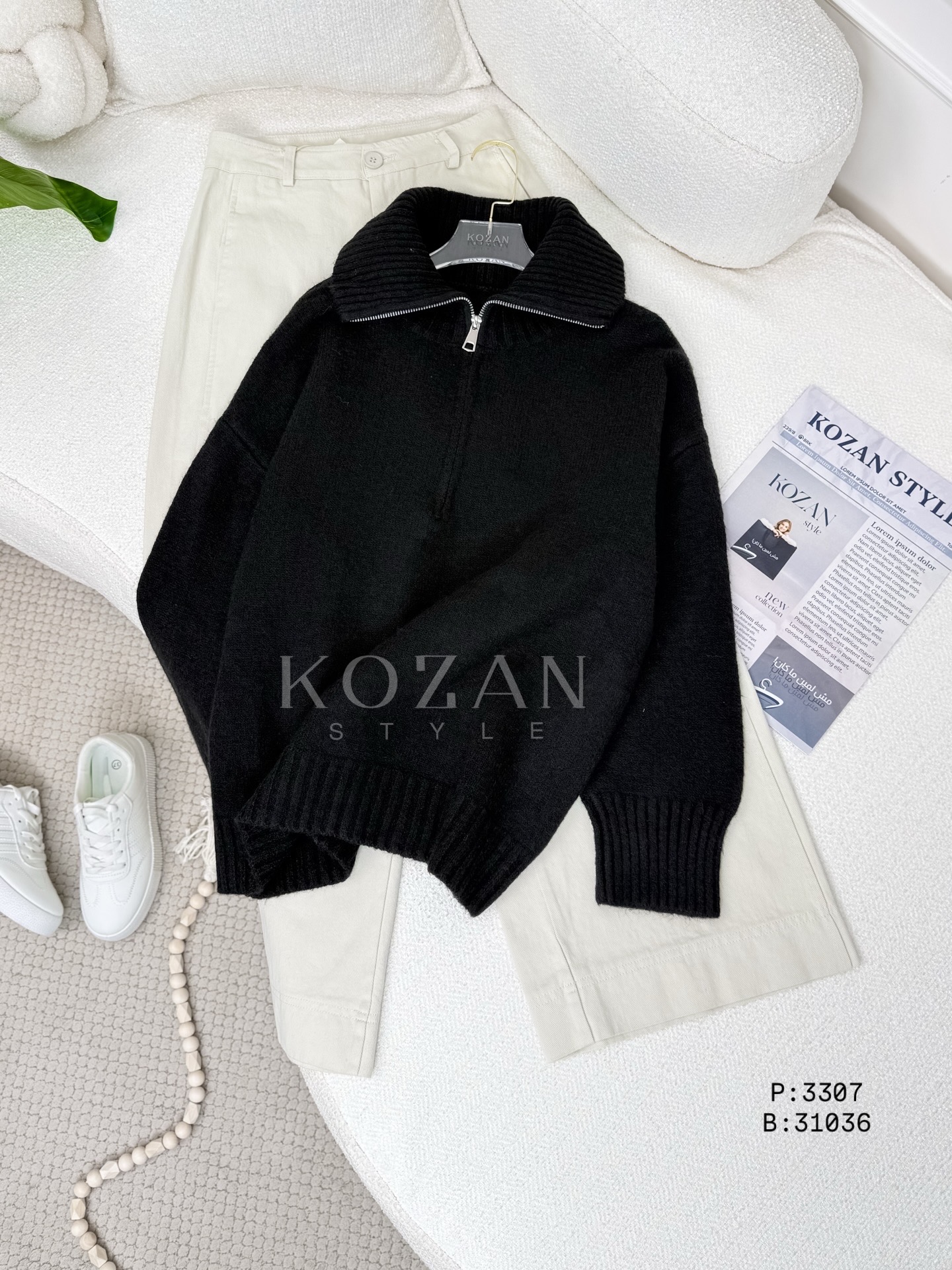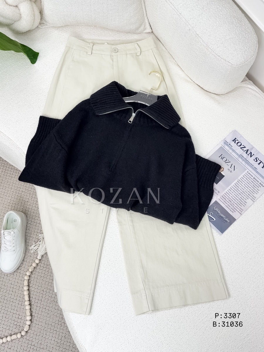 بلوزة صوف مع سحاب 3307 اسود