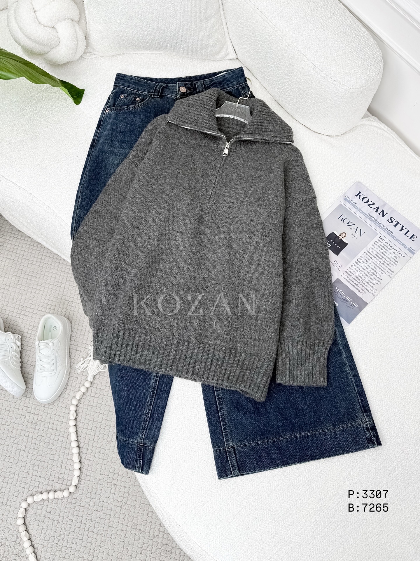 بلوزة صوف مع سحاب 3307 رمادي