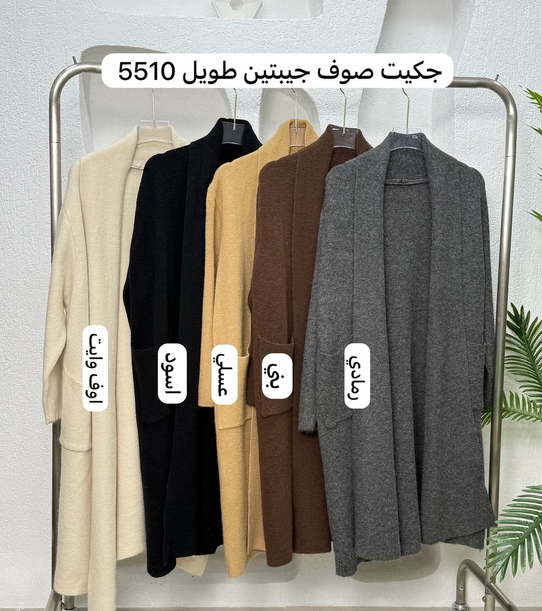 جكيت صوف جيبتين طويل 5510 اوف وايت