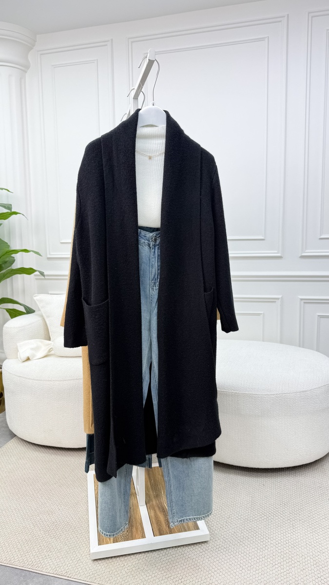 جكيت صوف جيبتين طويل 5510 اسود