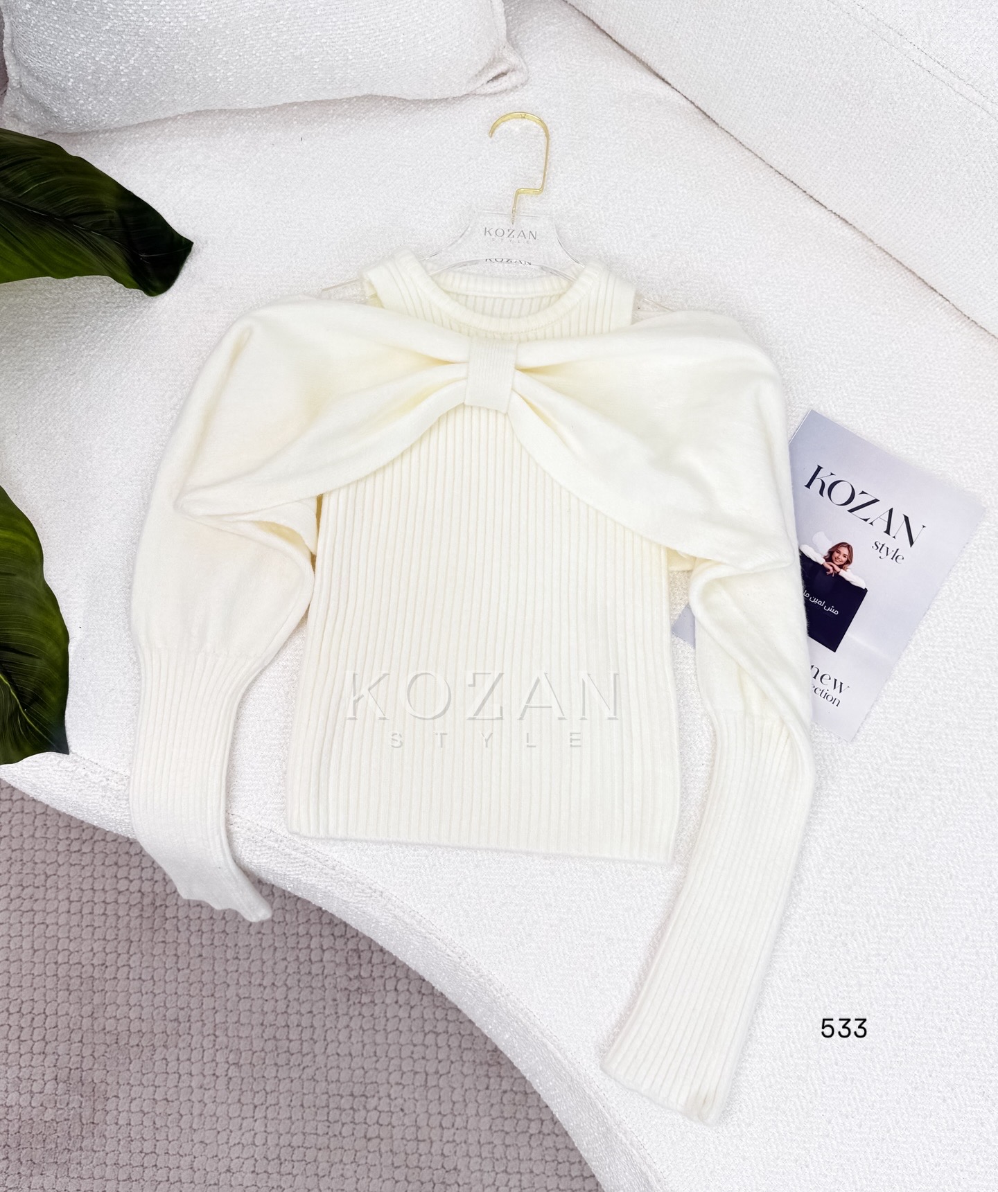 بلوزة ببيونه كت عريض 533 اوف وايت