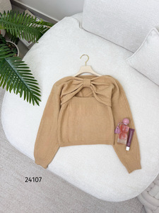 بلوزة ببيونه كت رفيع 24107 عسلي