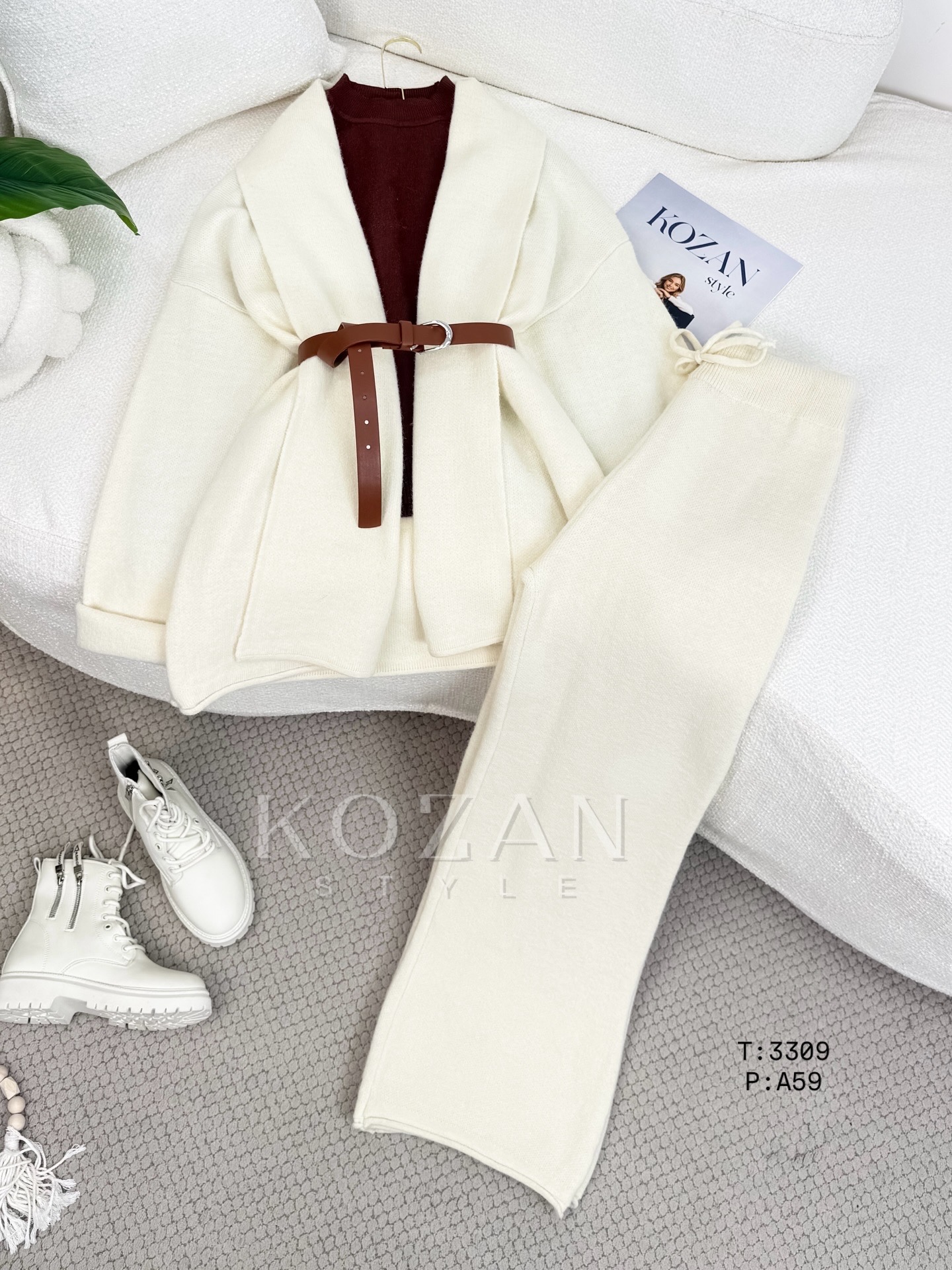 طقم صوف جكيت مفتوح 3309 اوف وايت