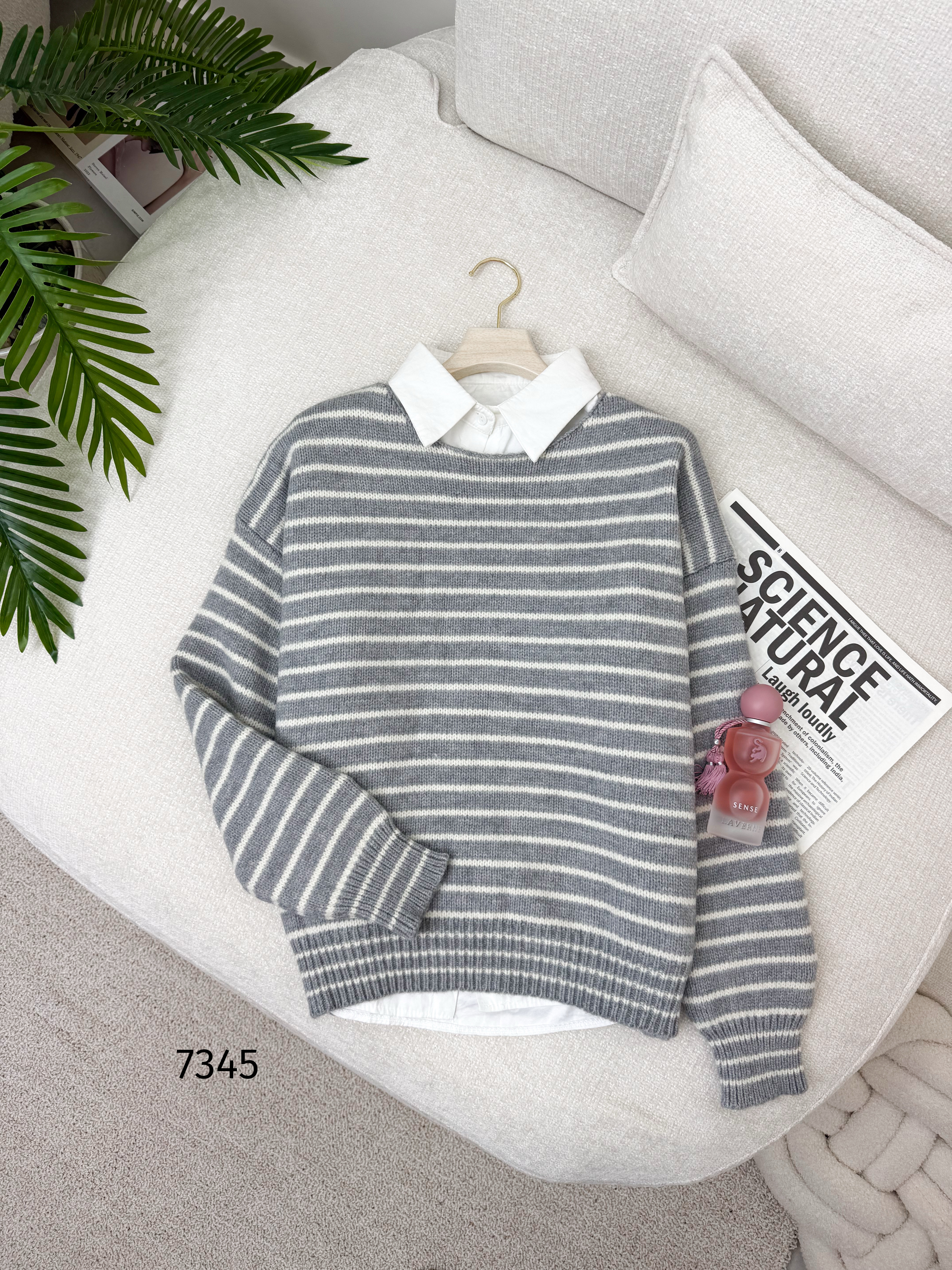 بلوزة صوف مخطط 7345 سكني مخطط ابيض
