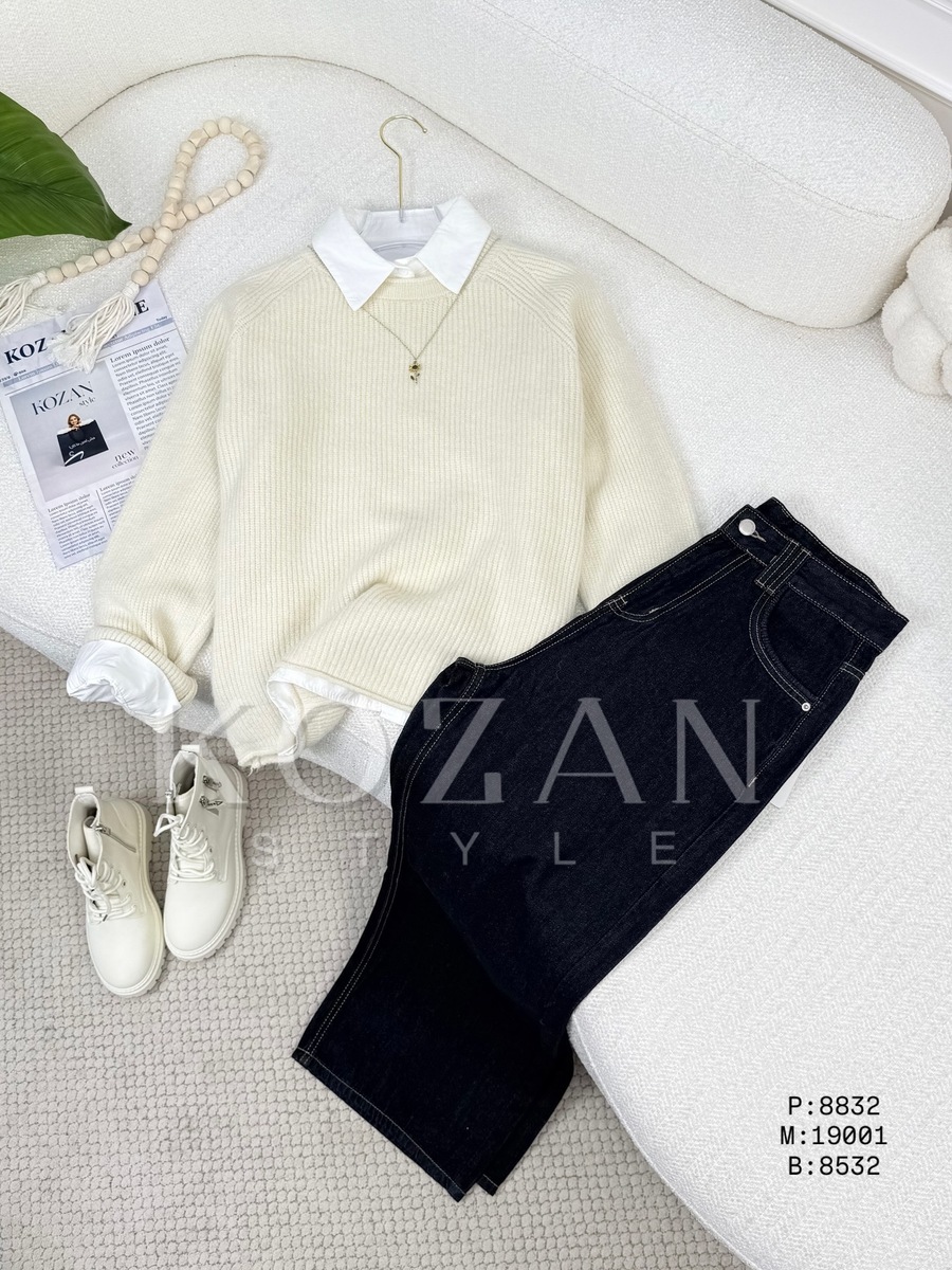 بلوزة صوف 8832 سكني مع قميص بيج