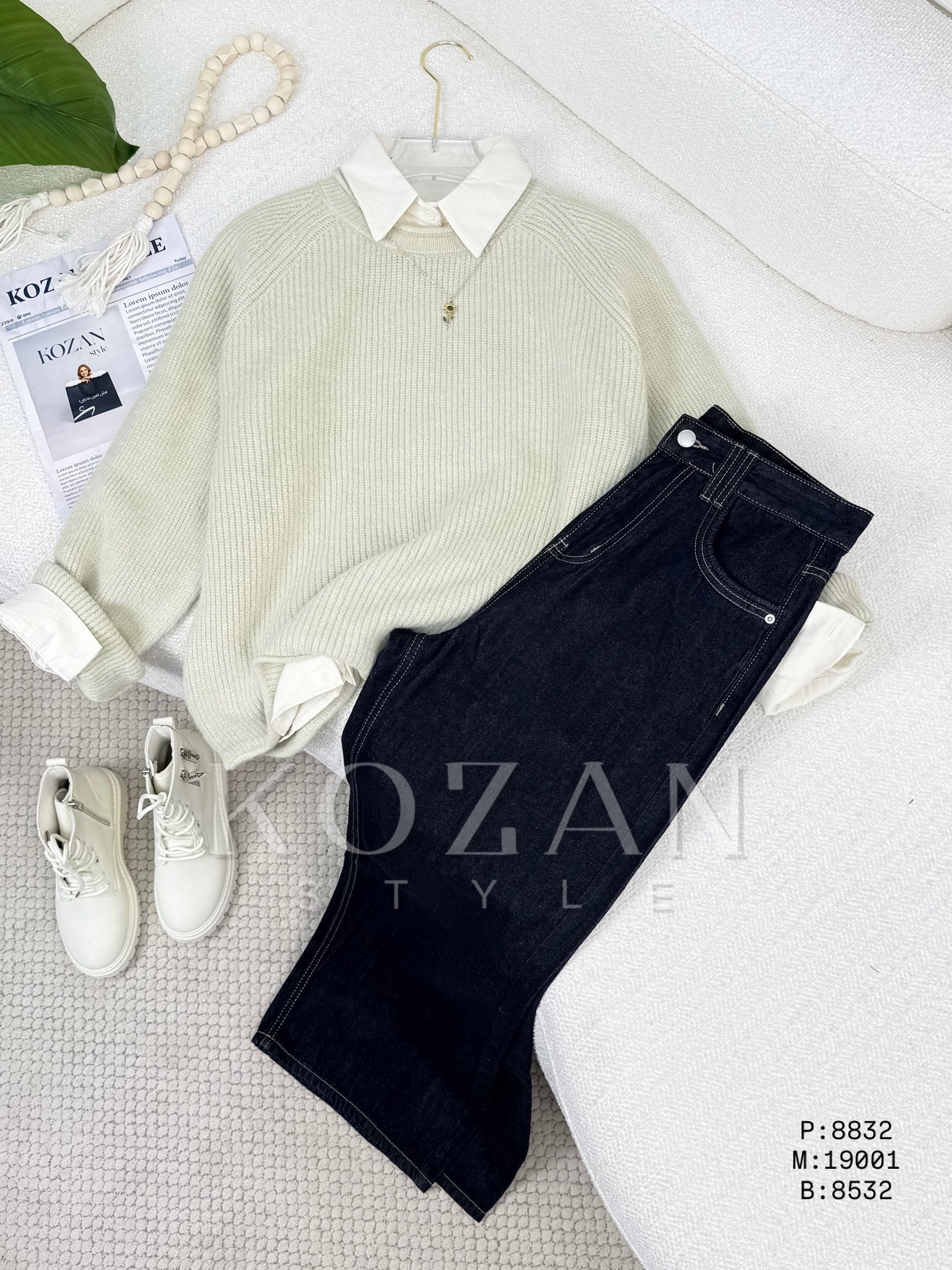 بلوزة صوف 8832 اسود مع قميص ابيض
