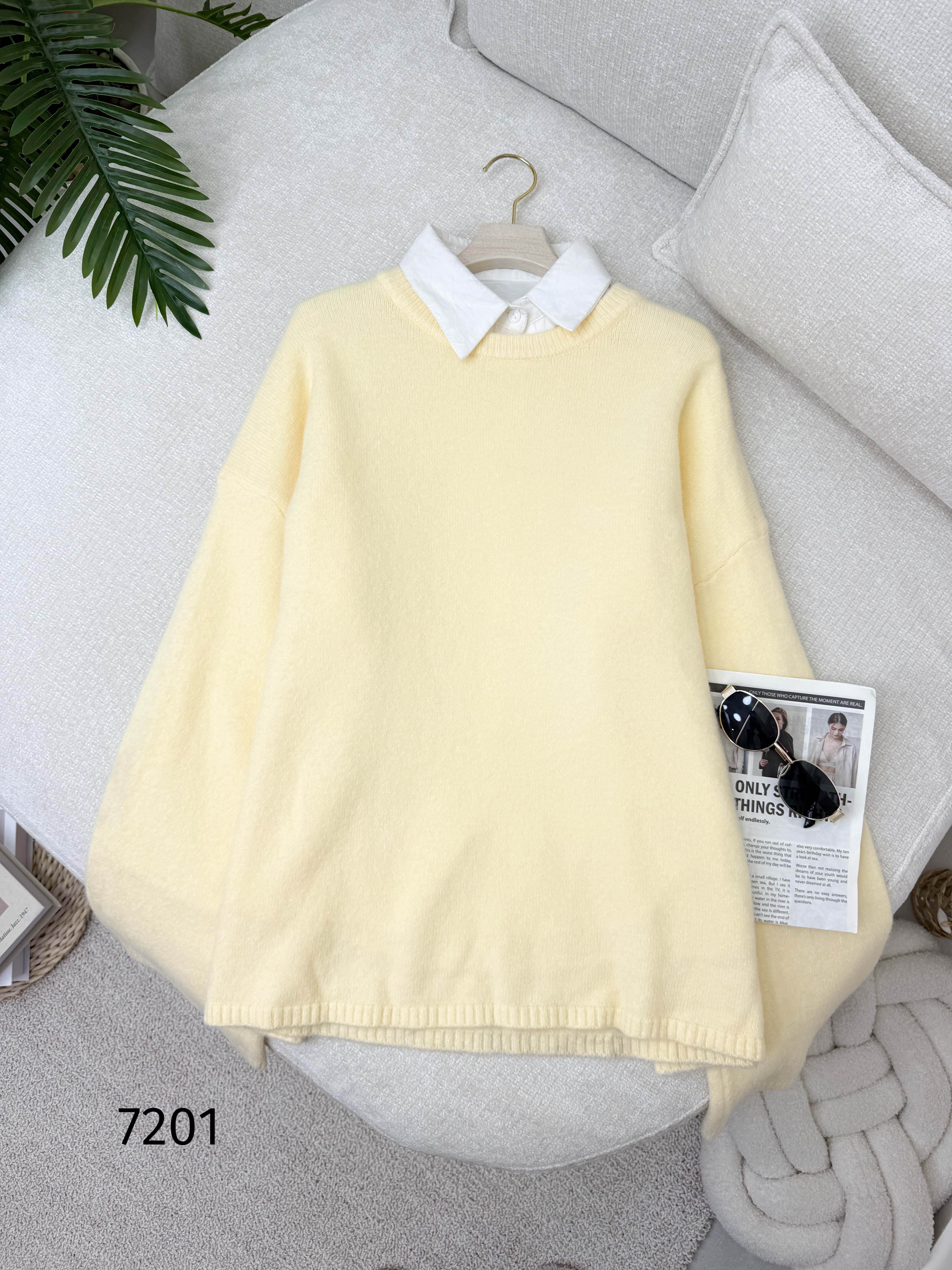 بلوزة صوف اوفر سايز 7201 اصفر