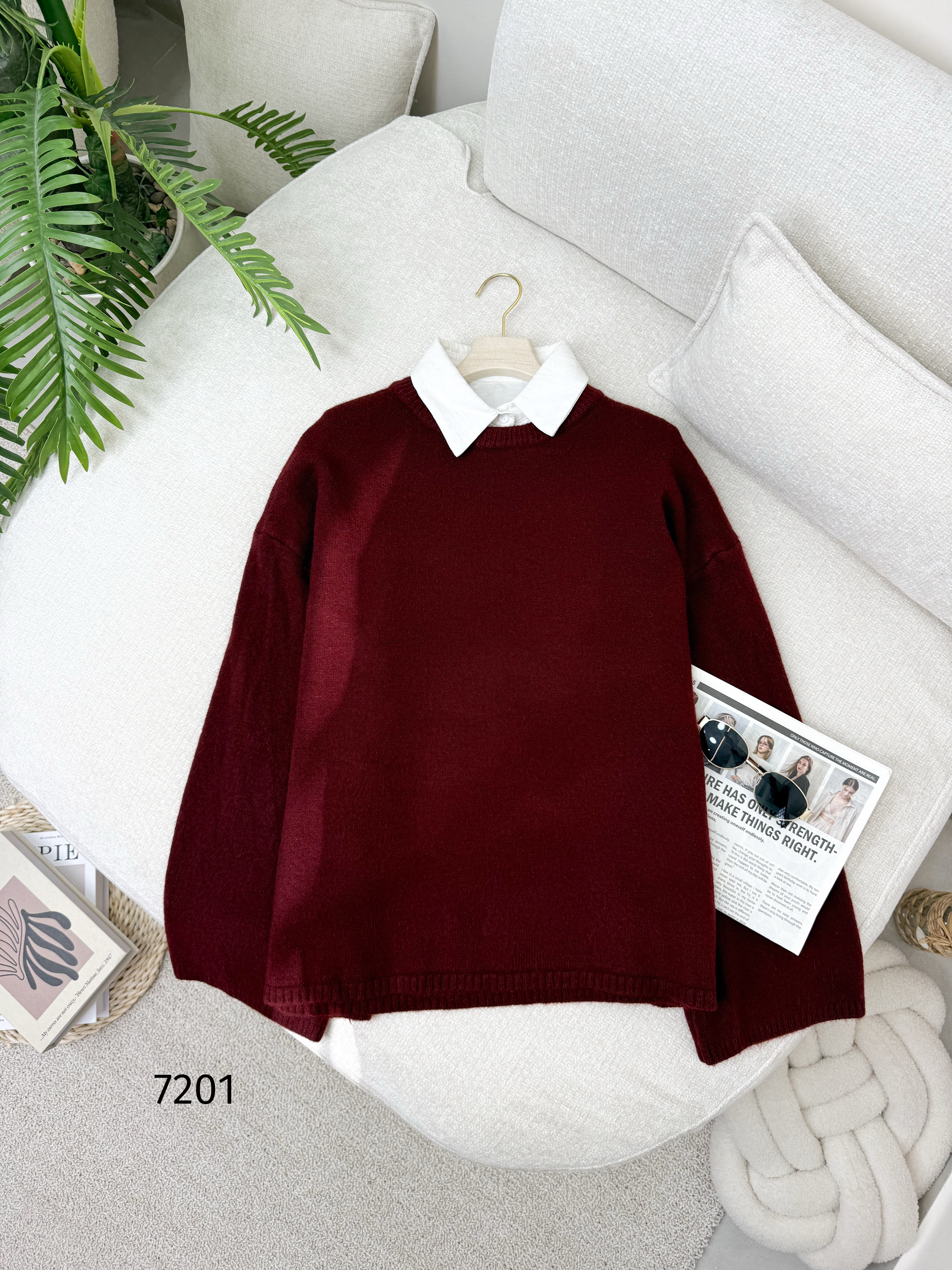 بلوزة صوف اوفر سايز 7201 خمري