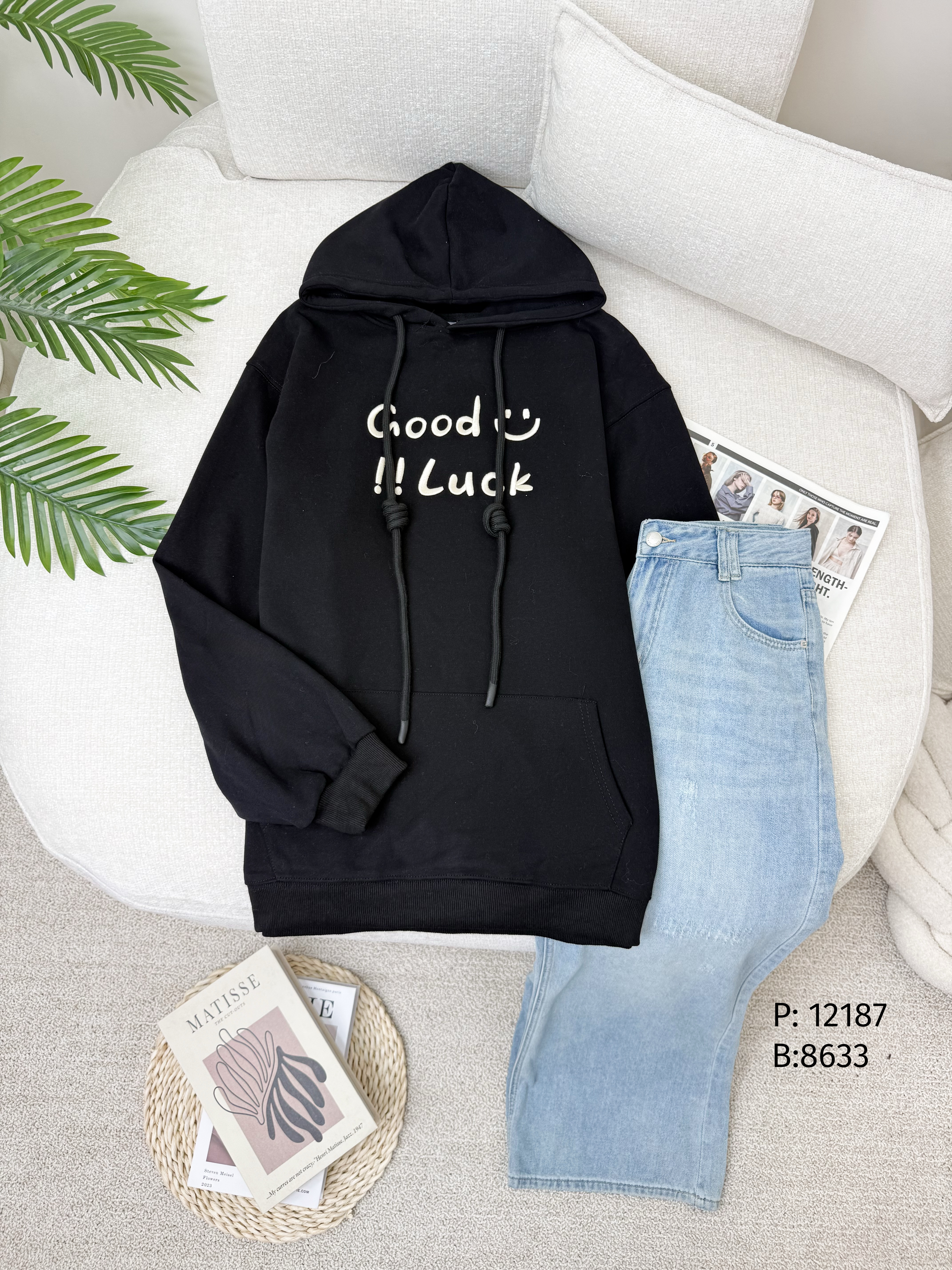 بلوزة هودي 12187 Good Like اسود