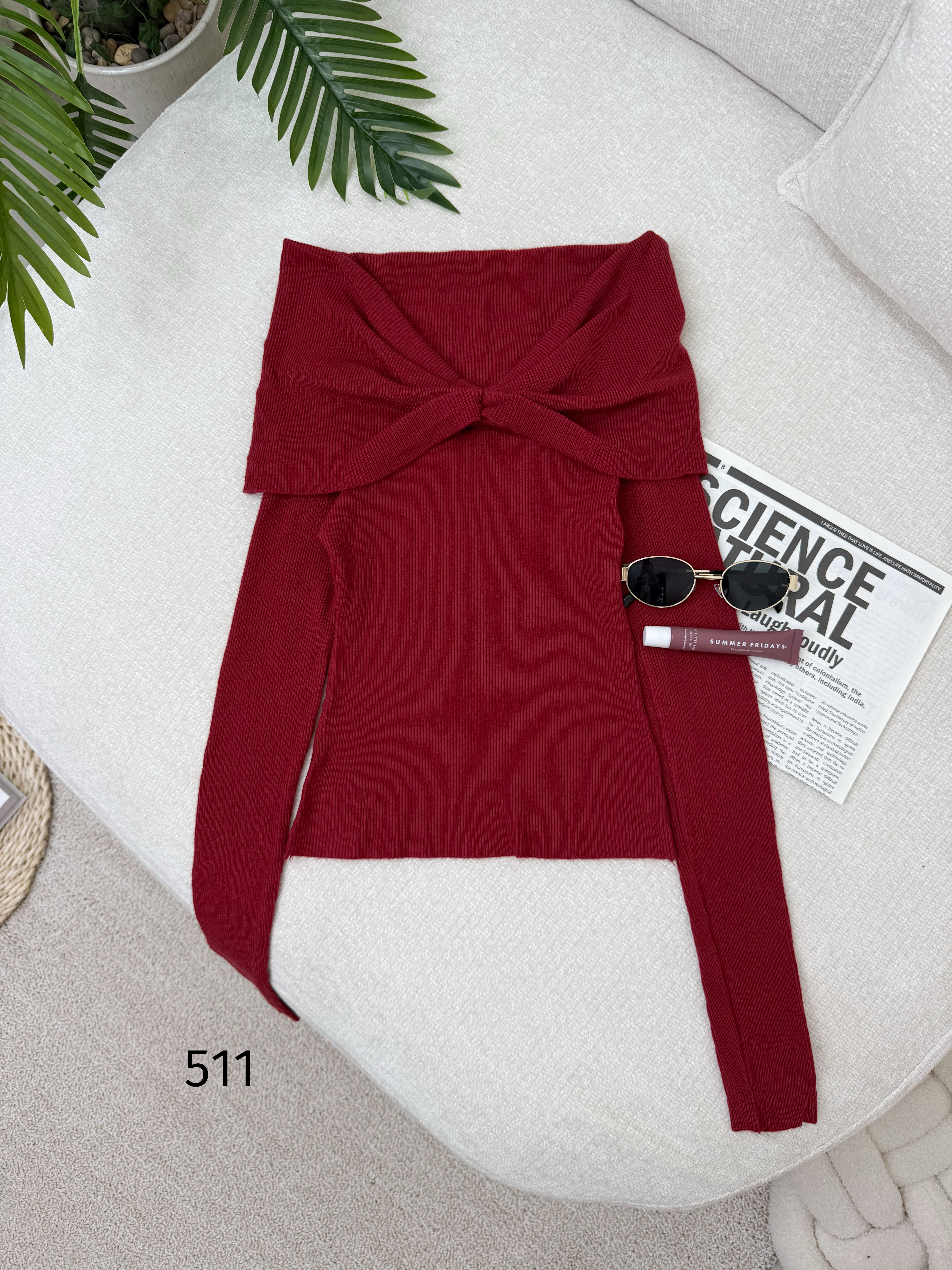 بلوزة قبة زم رقبة مفتوحة 511 احمر