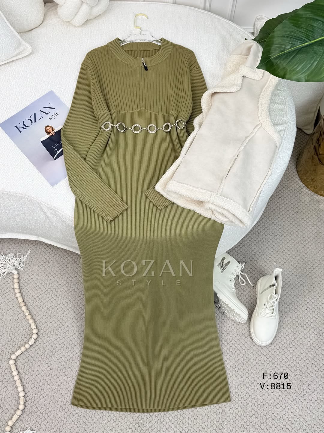 فستان قبة سحاب 670 زيتي