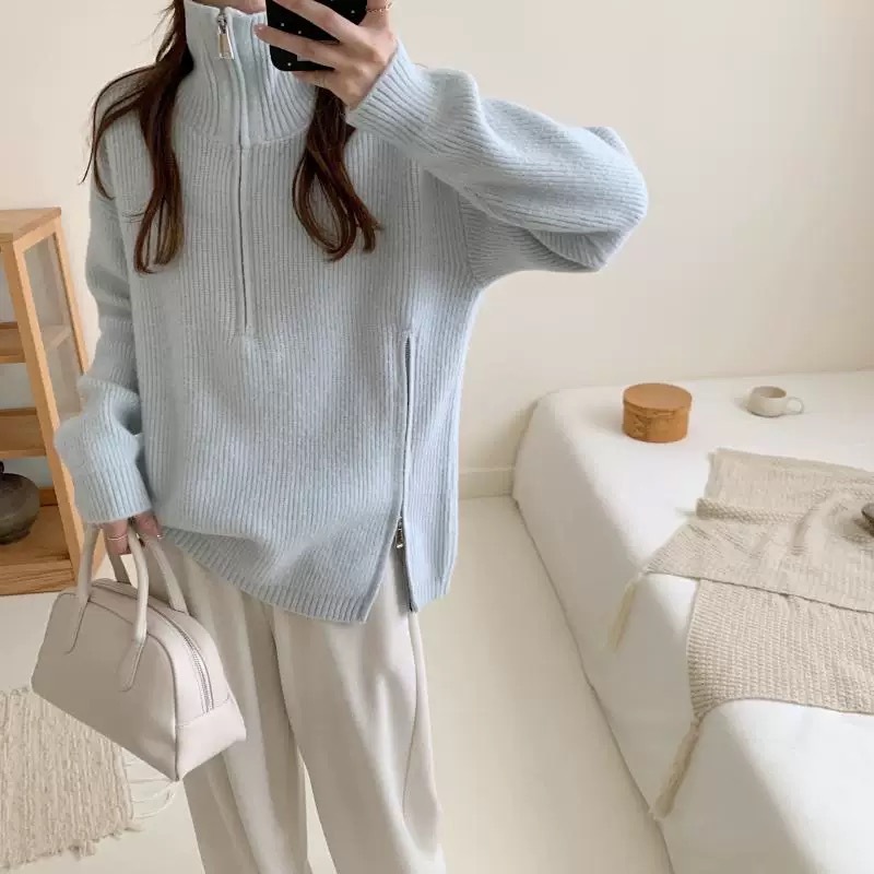 بلوزة صوف سحاب قبة وجنب 856 سكني