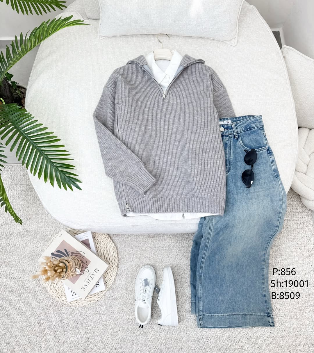 بلوزة صوف سحاب قبة وجنب 856 رمادي