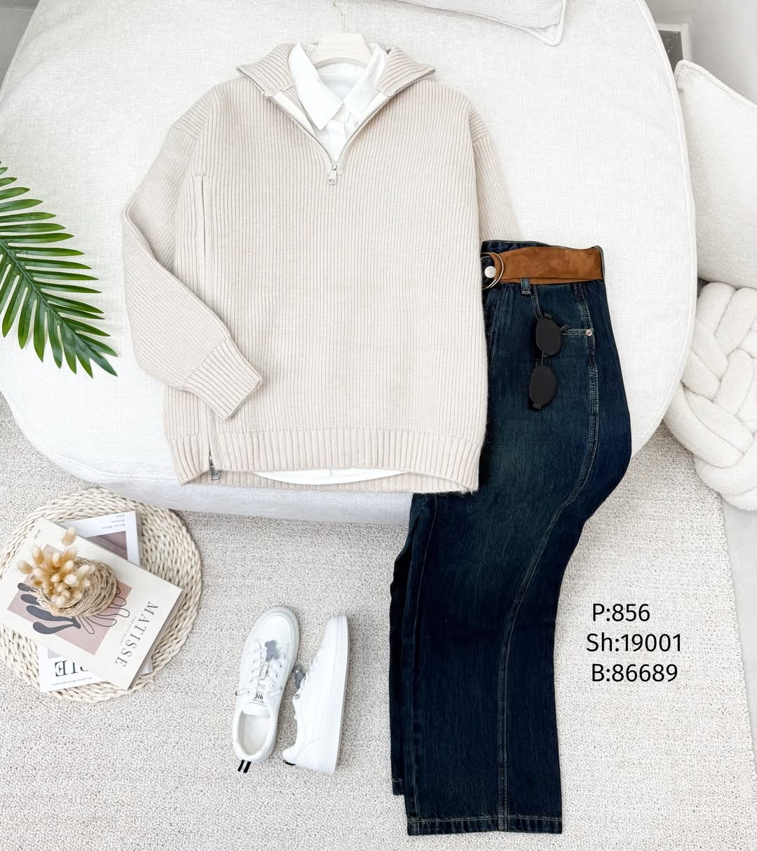 بلوزة صوف سحاب قبة وجنب 856 اوف وايت