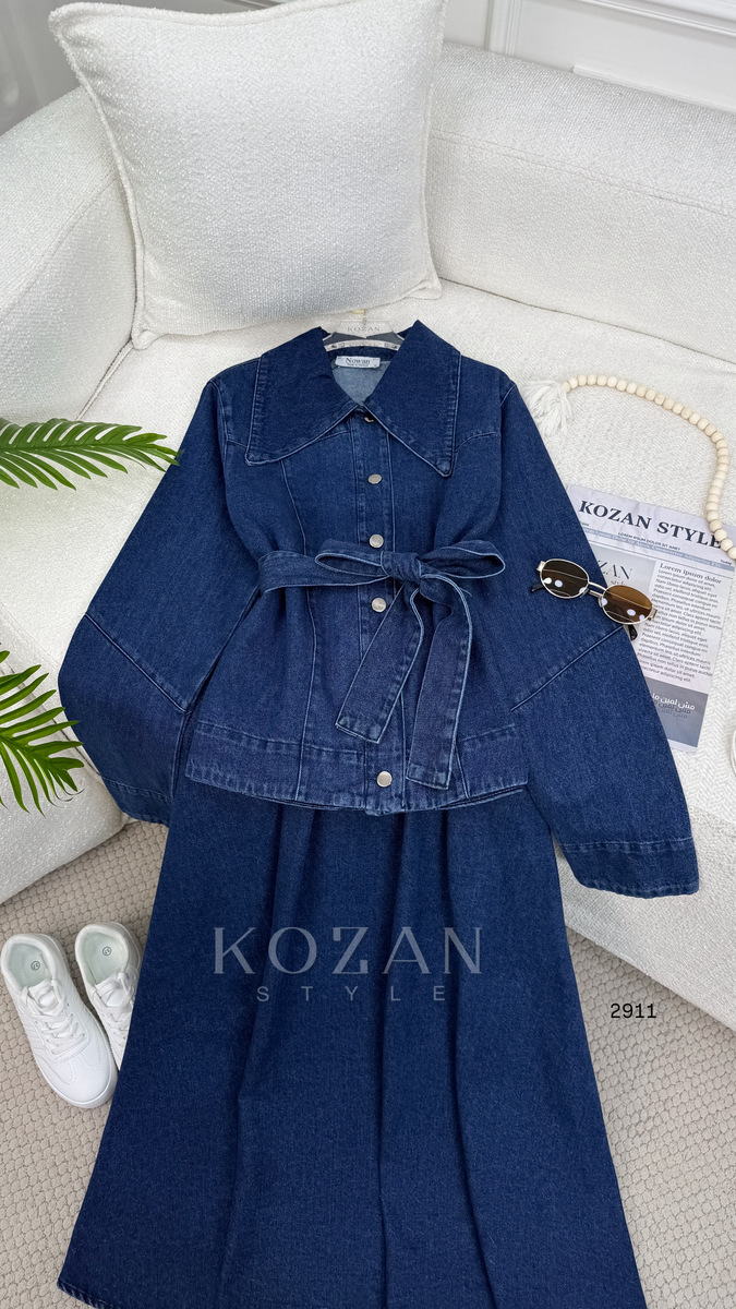 طقم تنورة 2911 جينز غامق