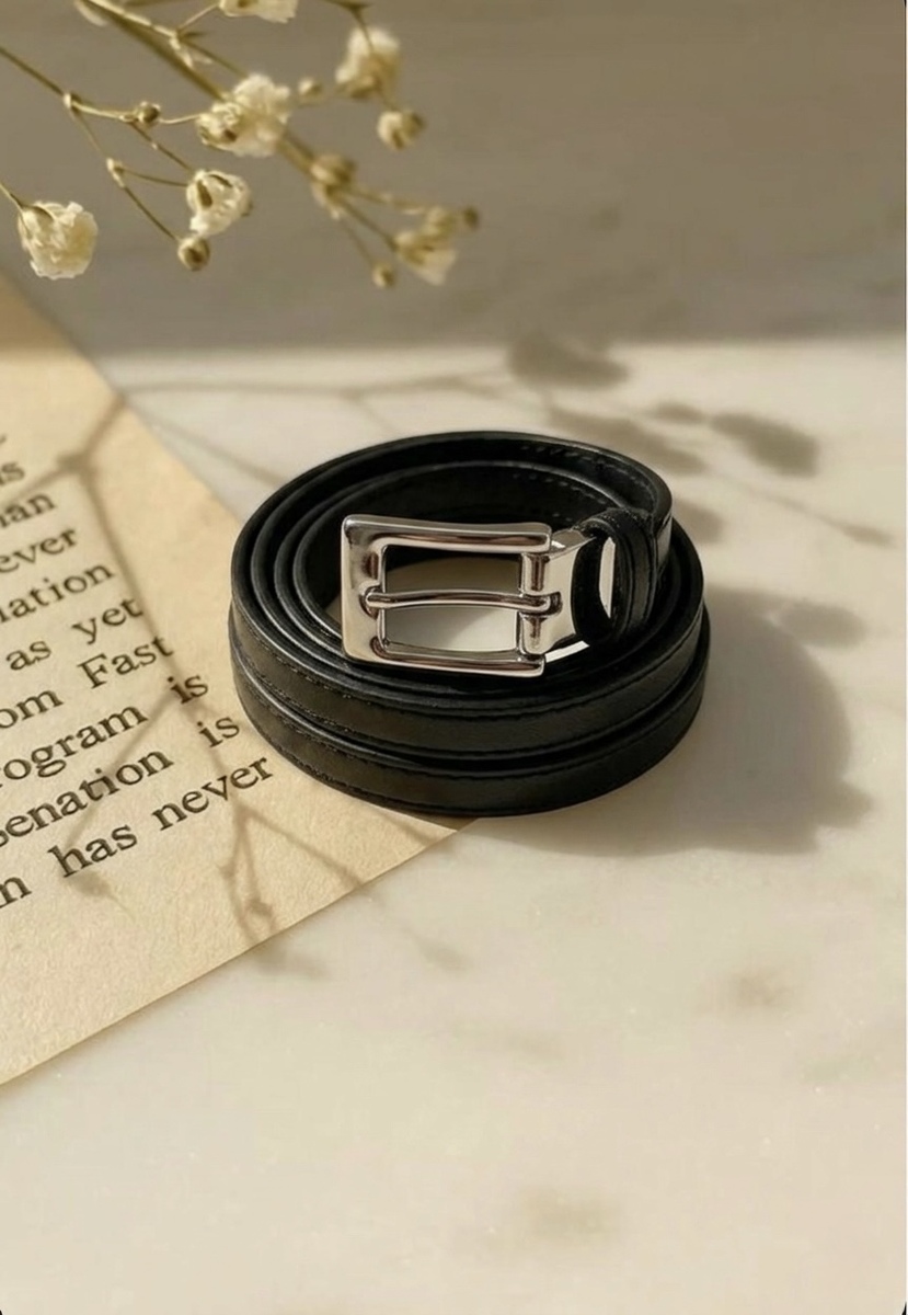 حزام رفيع فضي مع اسود 7659