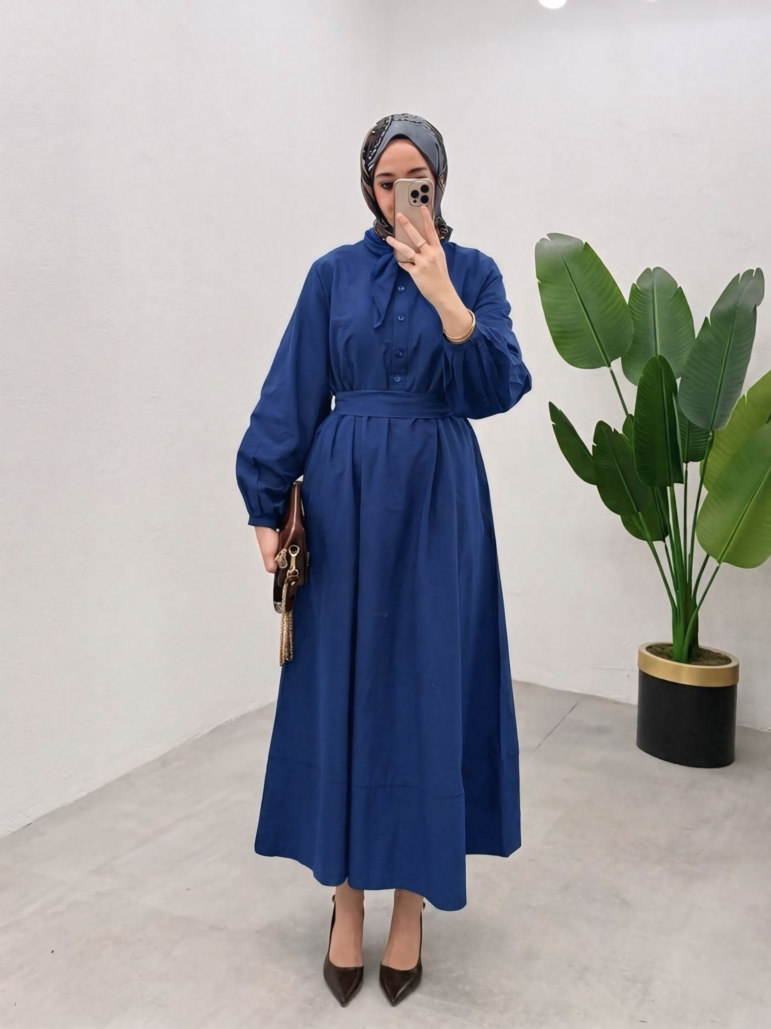 فستان ربطة 8445 كحلي