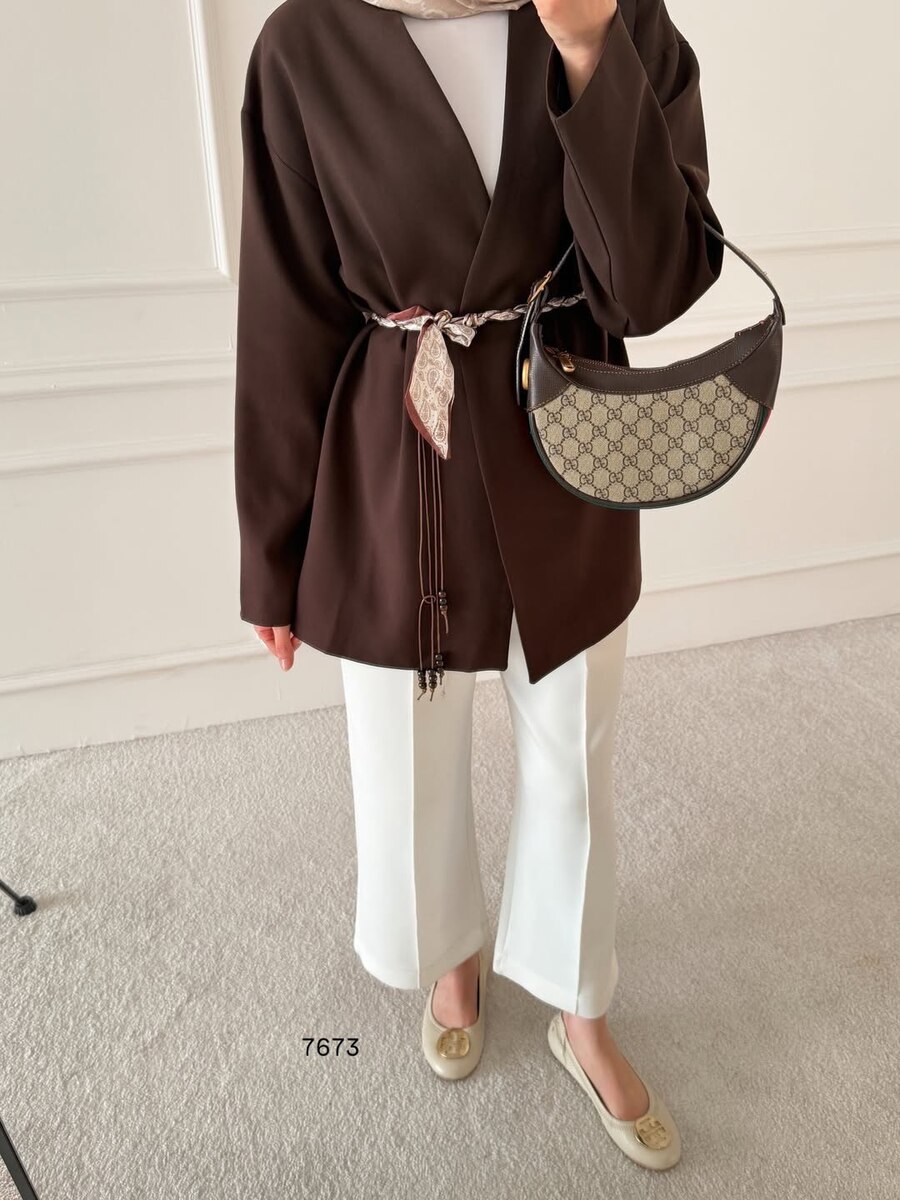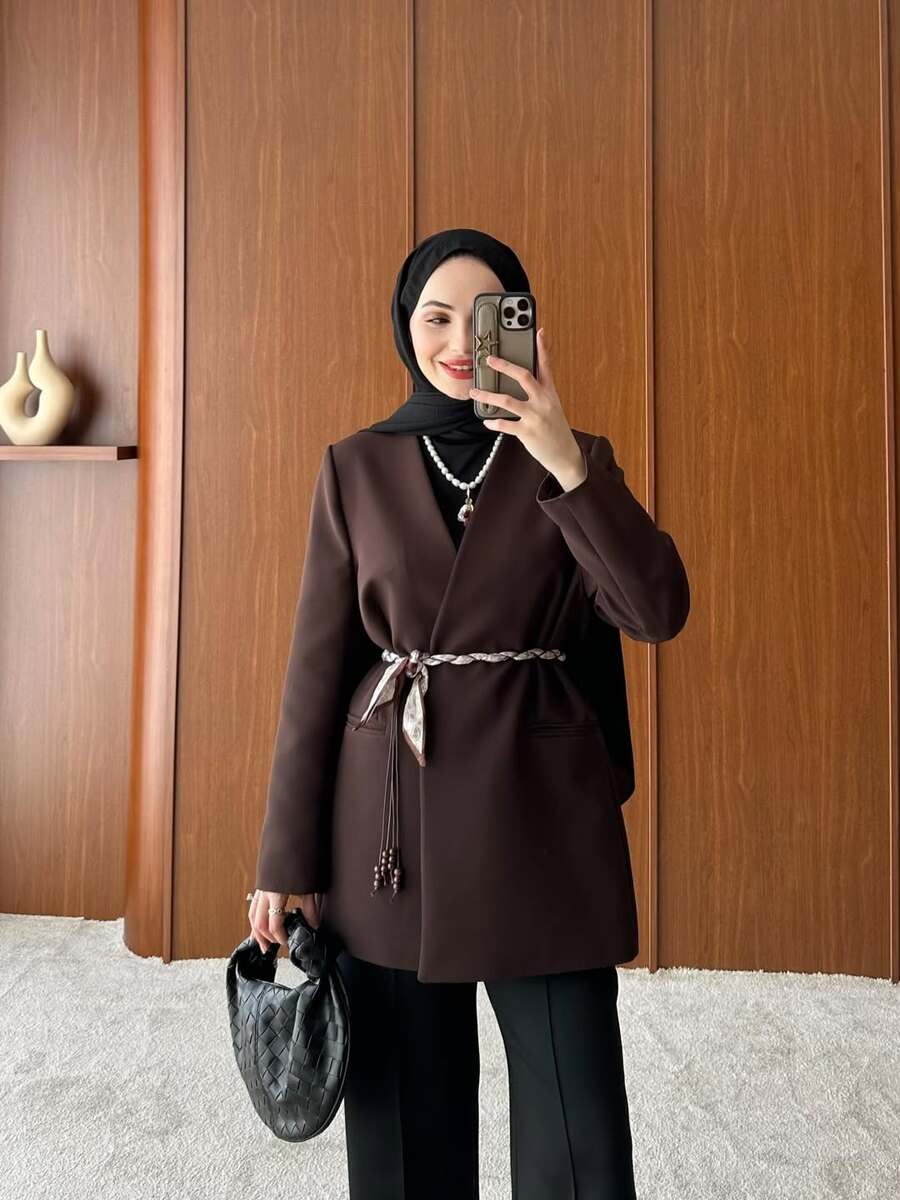 جكيت مع حزام مجدل زيتي
