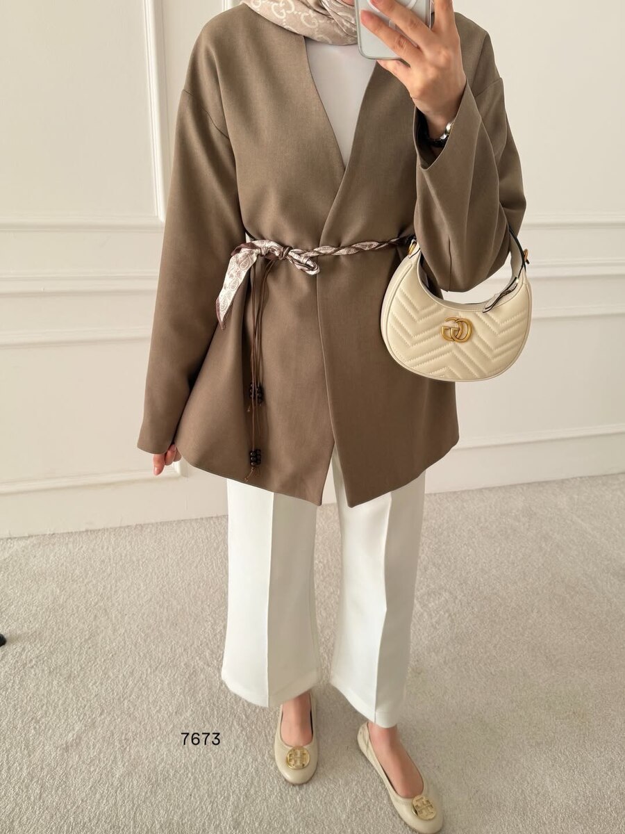 جكيت مع حزام مجدل زيتي
