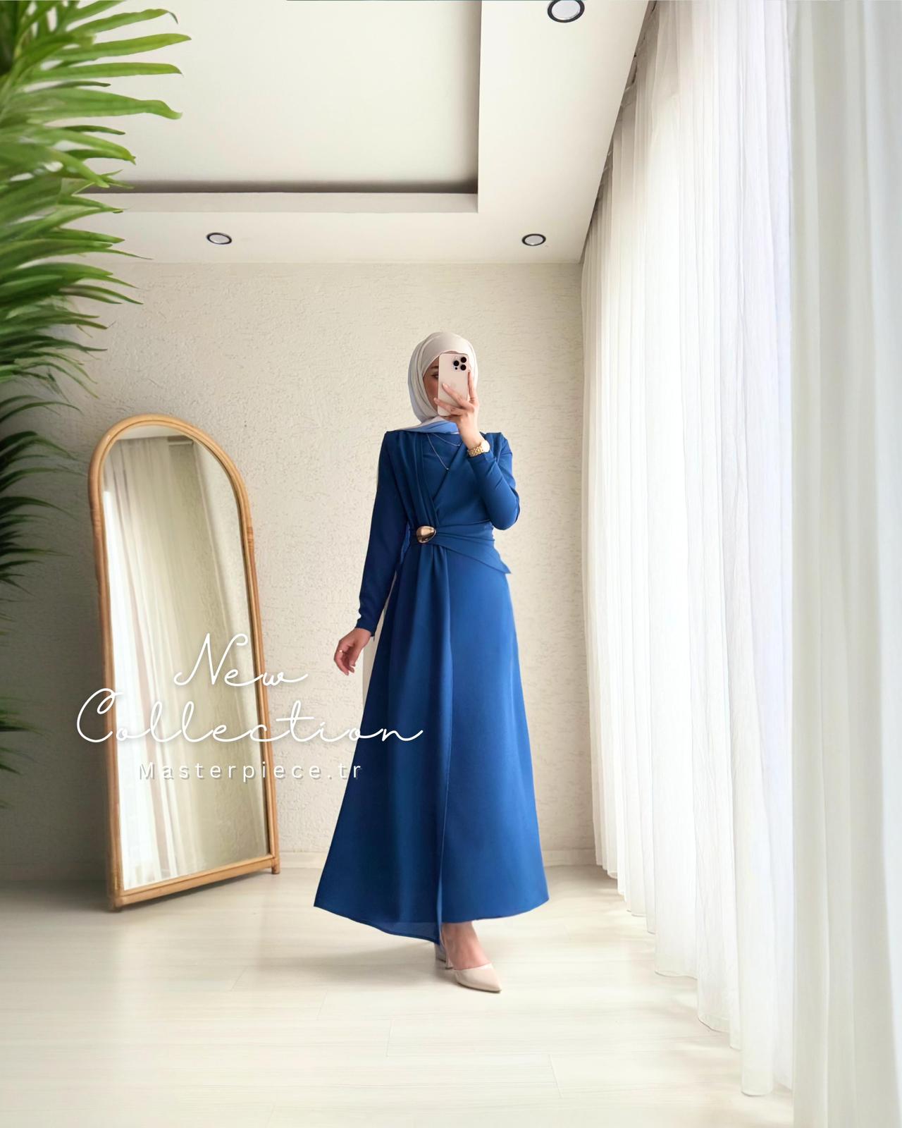 فستان ميون مع بروش كحلي