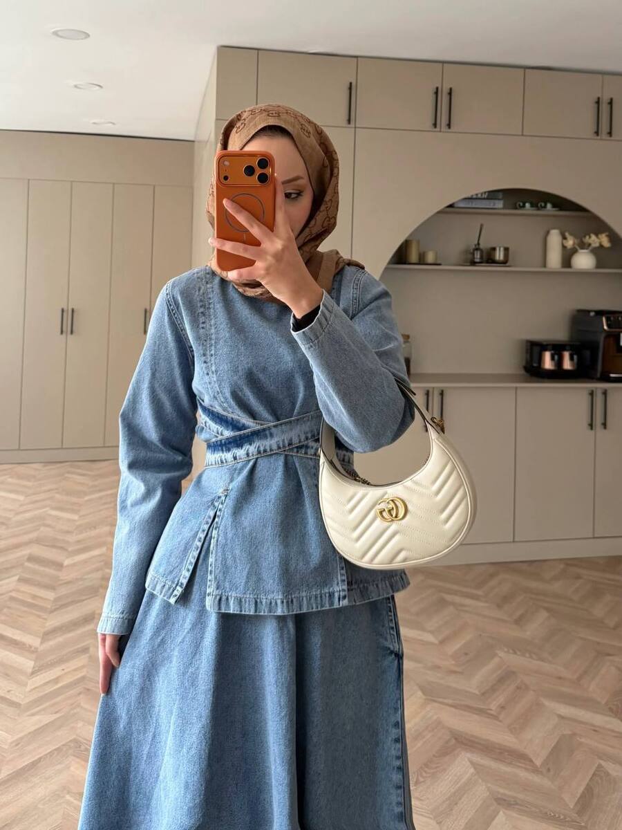 طقم تنورة 0712 ( TABA ) جينز فاتح