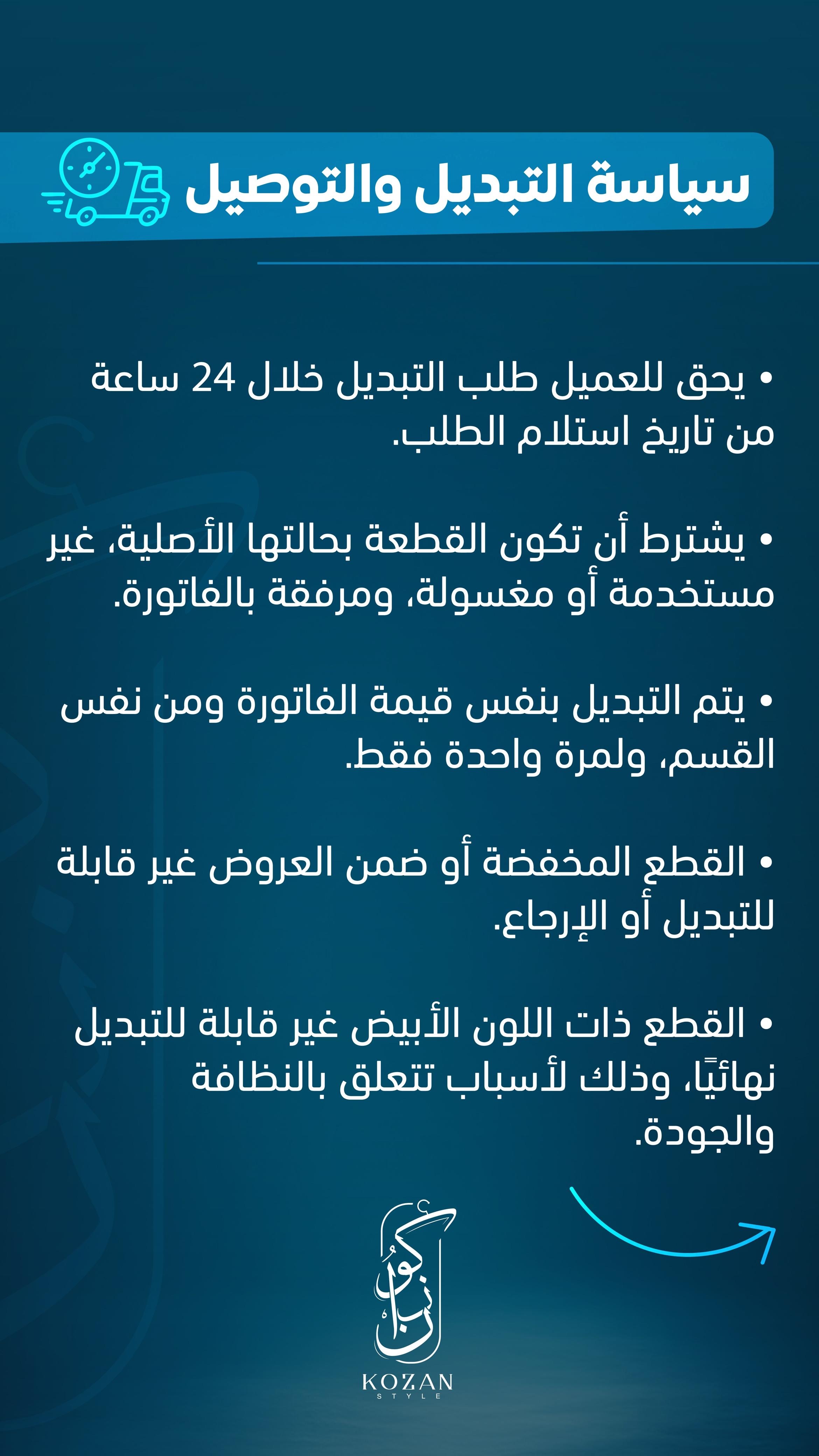 • يحق للعميل طلب التبديل خلال 24 ساعة من تاريخ استلام الطلب.