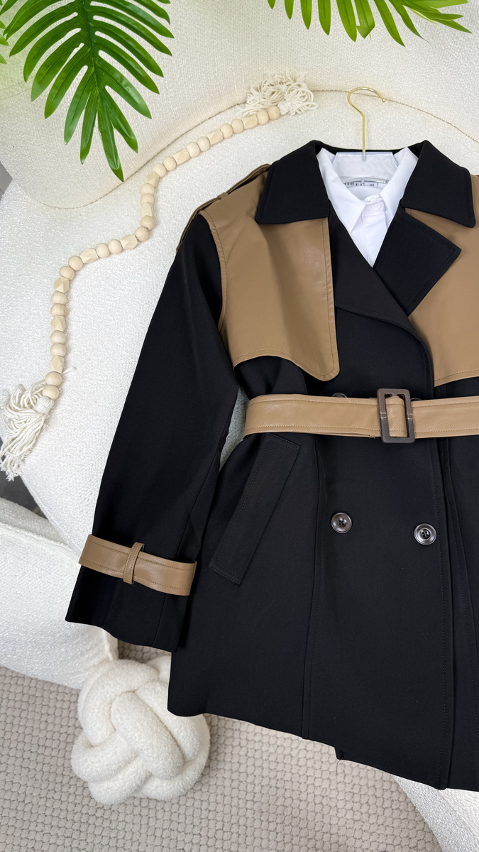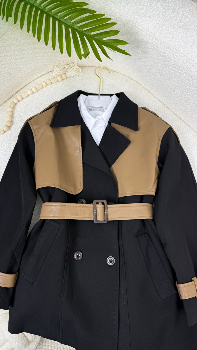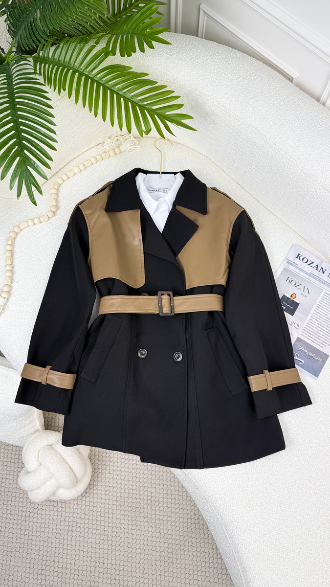 ترانش قصير كتف جلد 19005 كاكي كتف عسلي