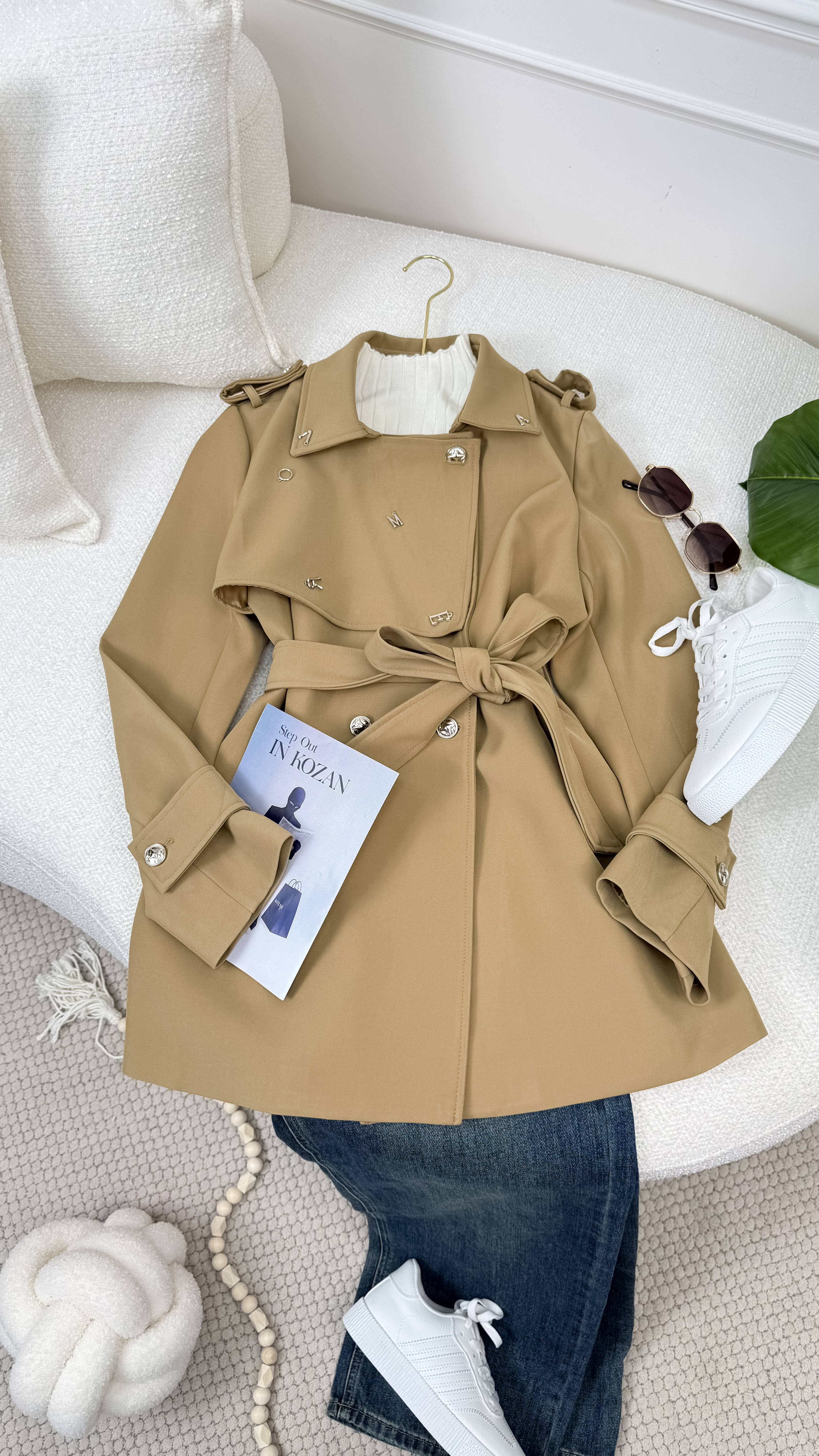 ترانش كتان خرز قصير 19008 | بيج فاتح