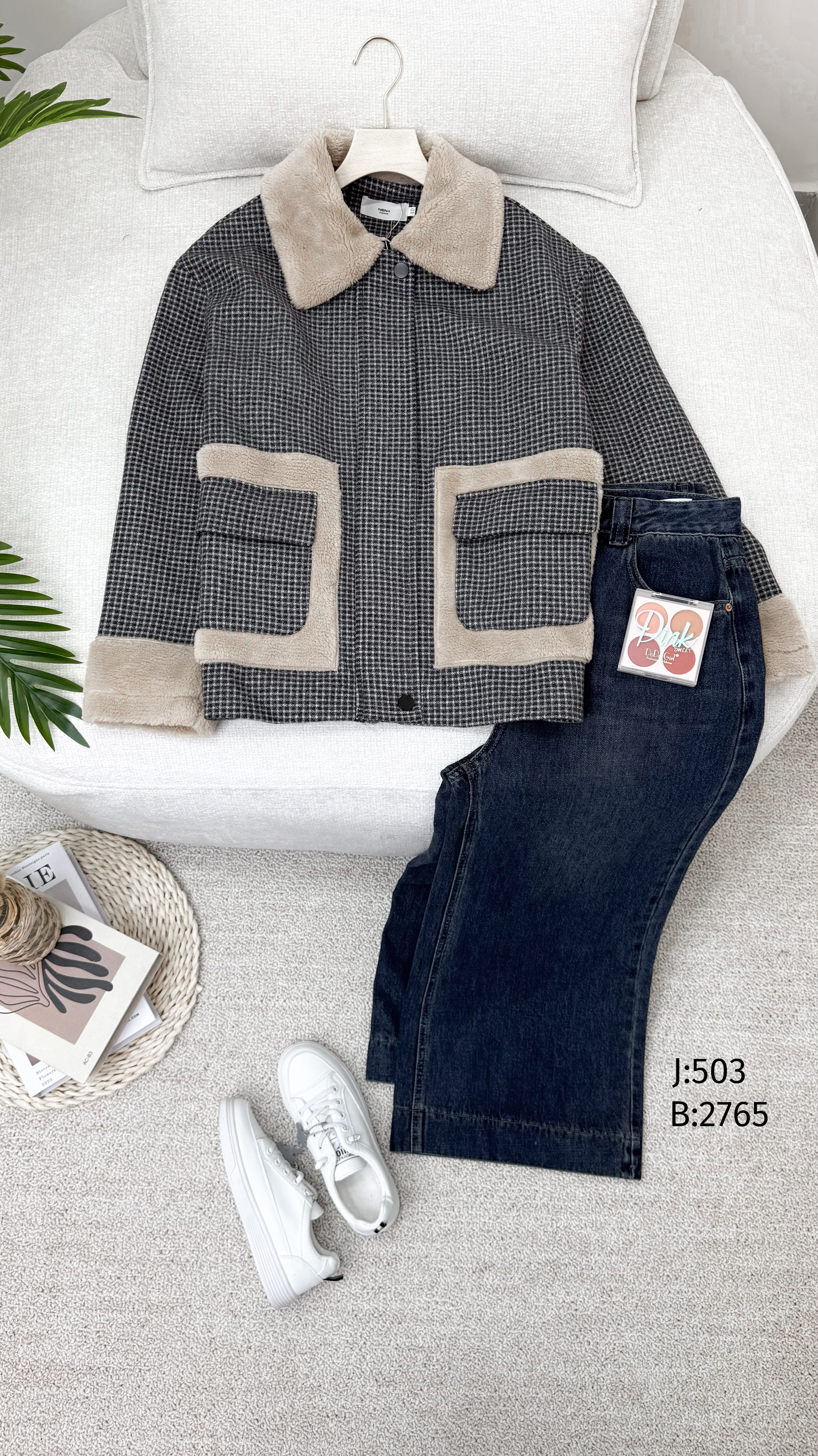 جكيت نيفا مربعات اسود 503