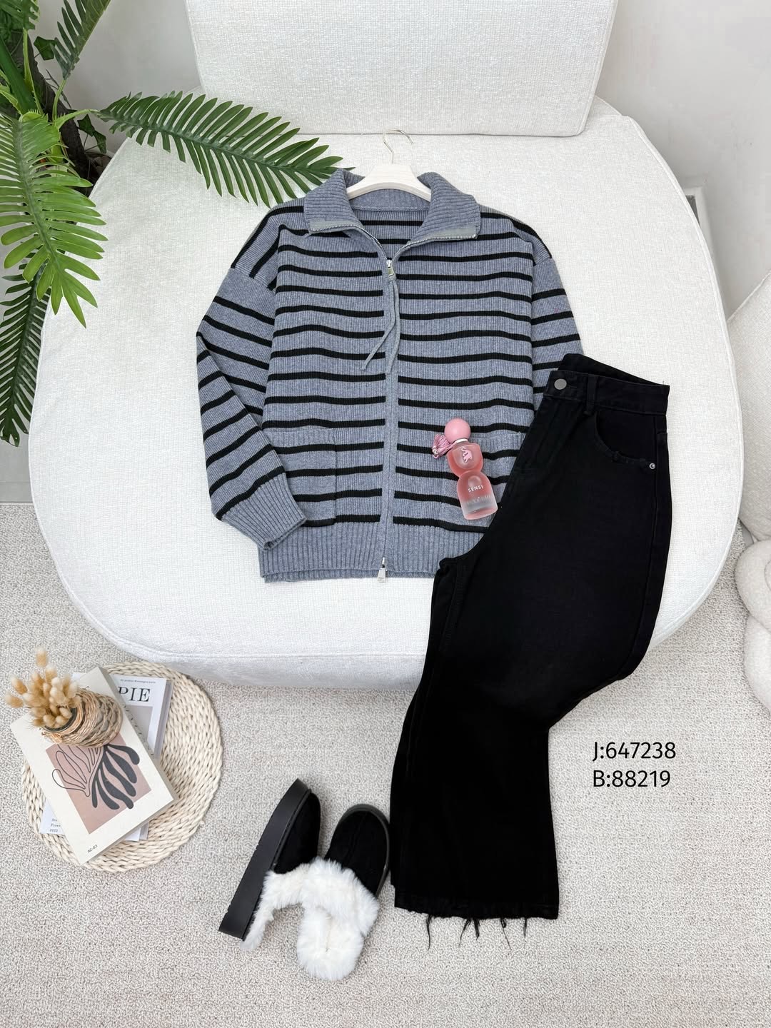 جاكيت مخطط مع جيب رمادي