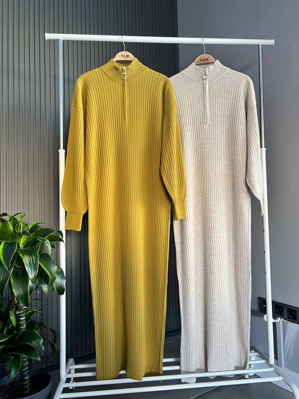 فستان صوف سحاب بيج فاتح 3268