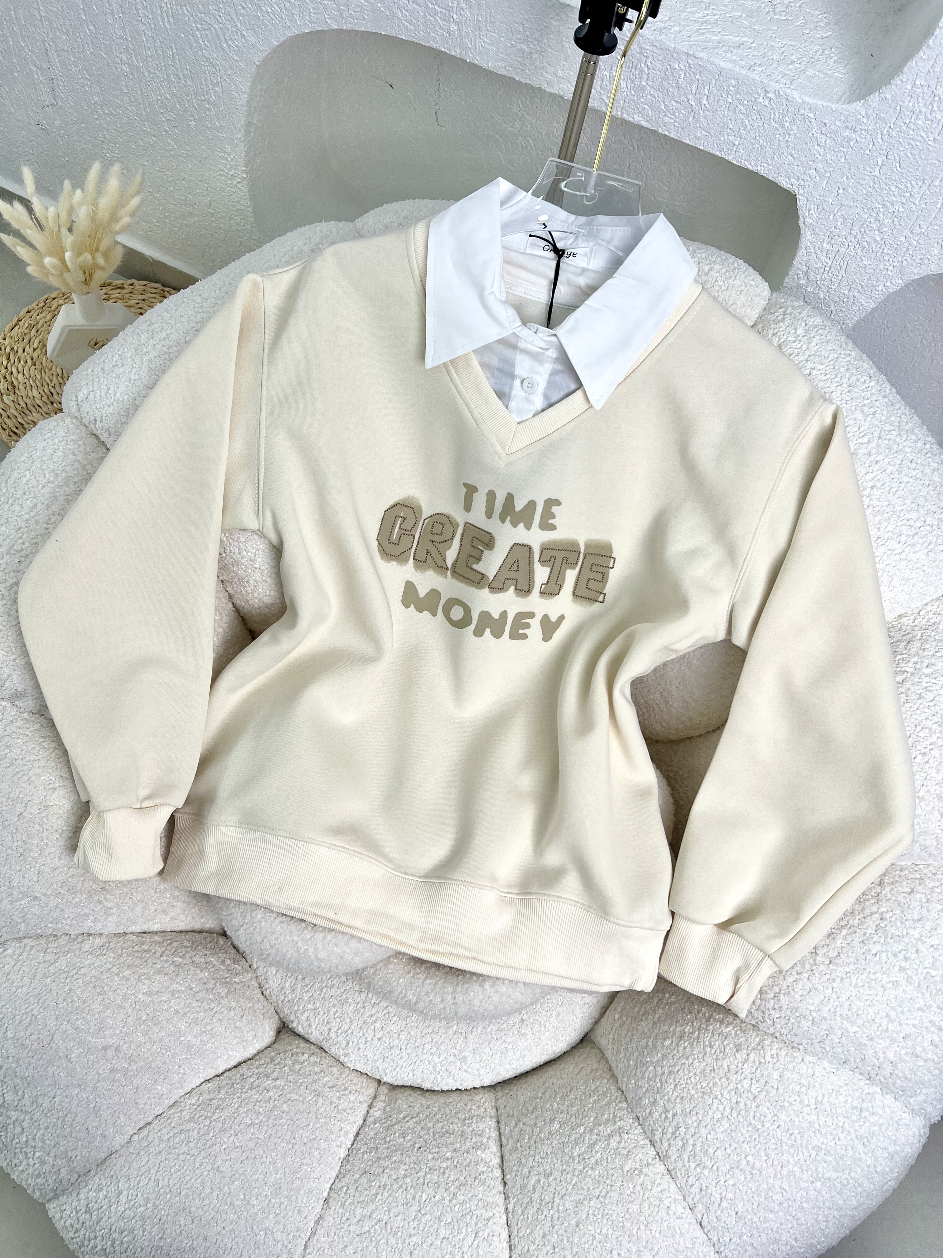 بلوزة قبة قميص TIME 5597 بيج