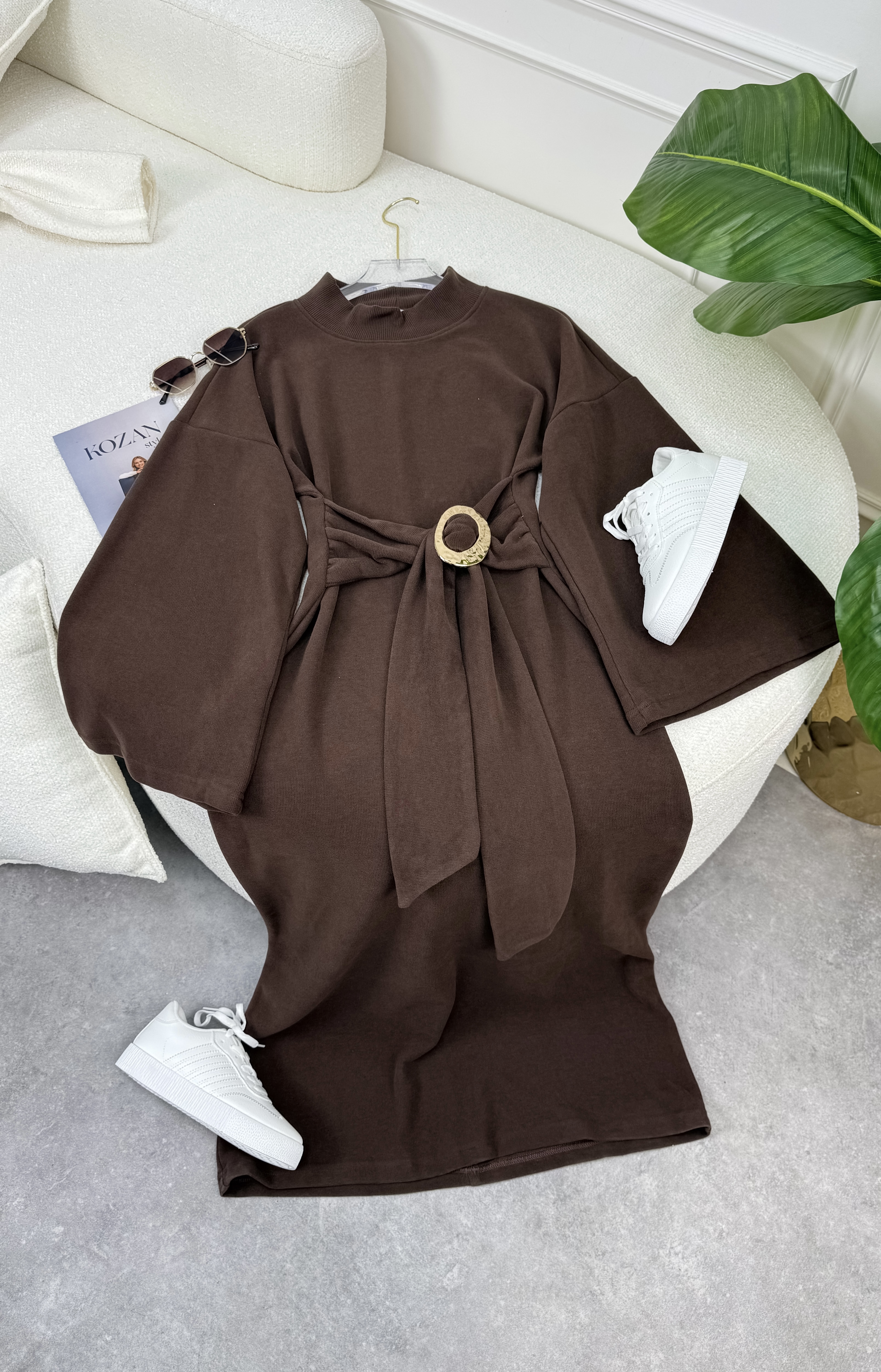 فستان دارين حزام 6531 بني