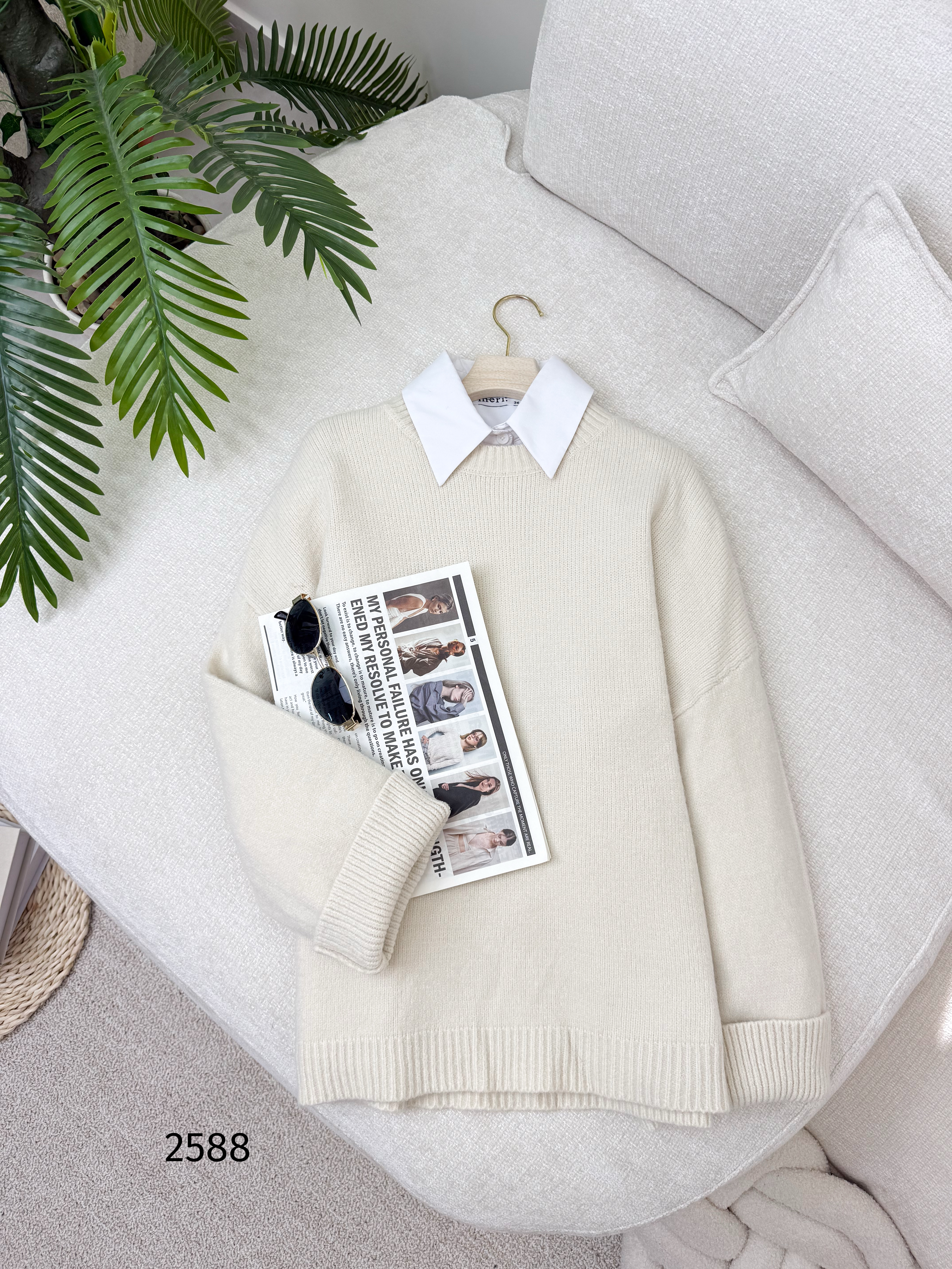 بلوزة صوف سادة 2588 بيج
